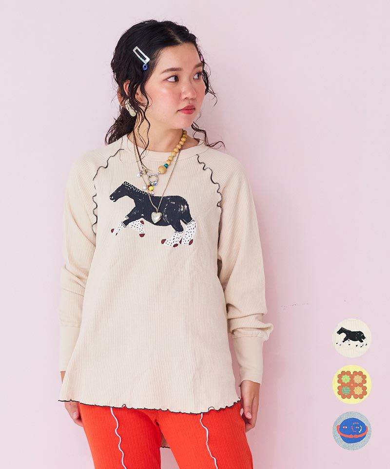 【Hungry Heart】袖チュールワッフルロンT(大人サイズ)