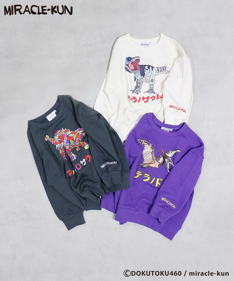 インパクト大の恐竜プリントで、シンプルなコーデにも個性をプラス。