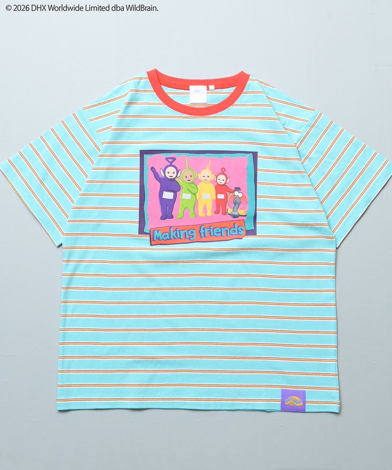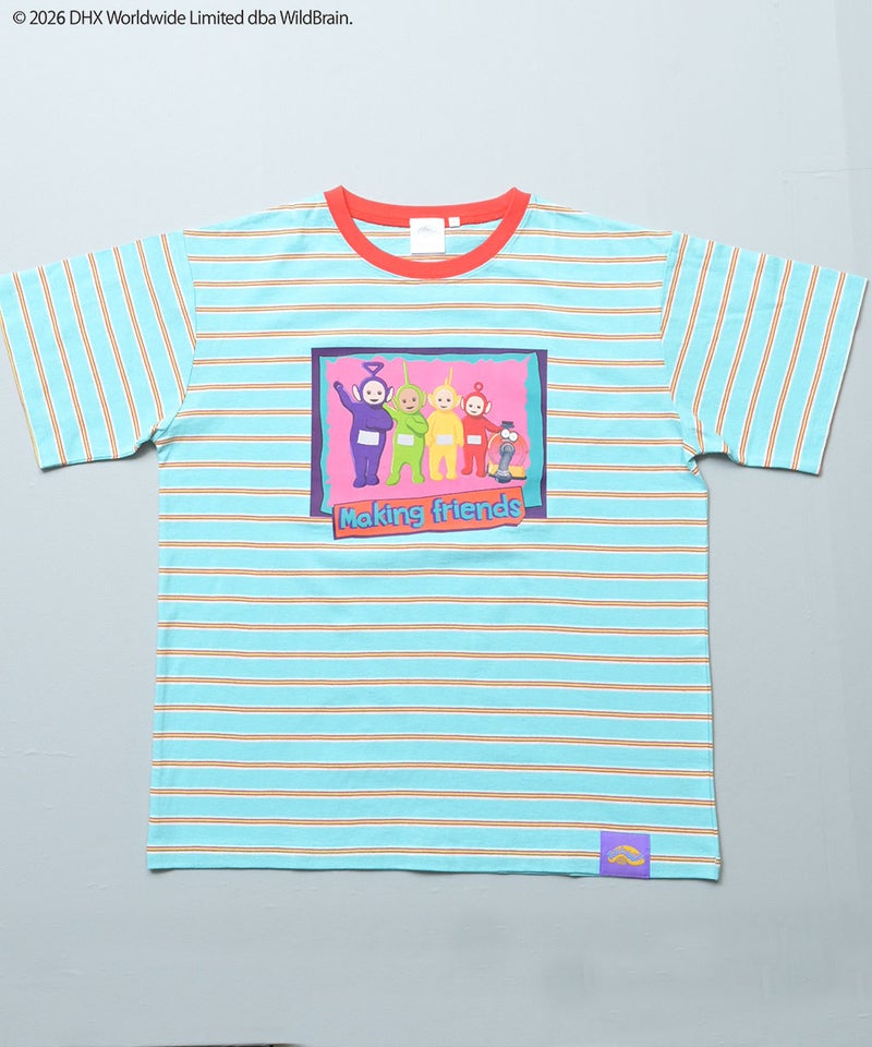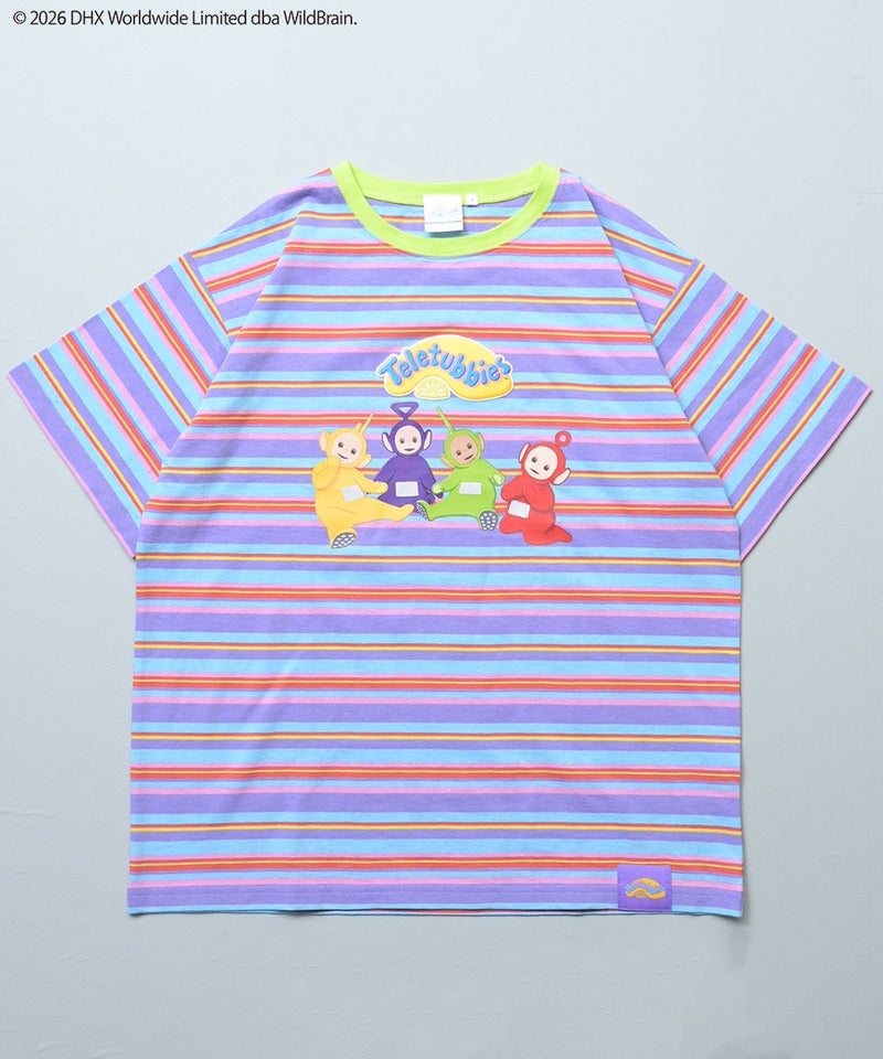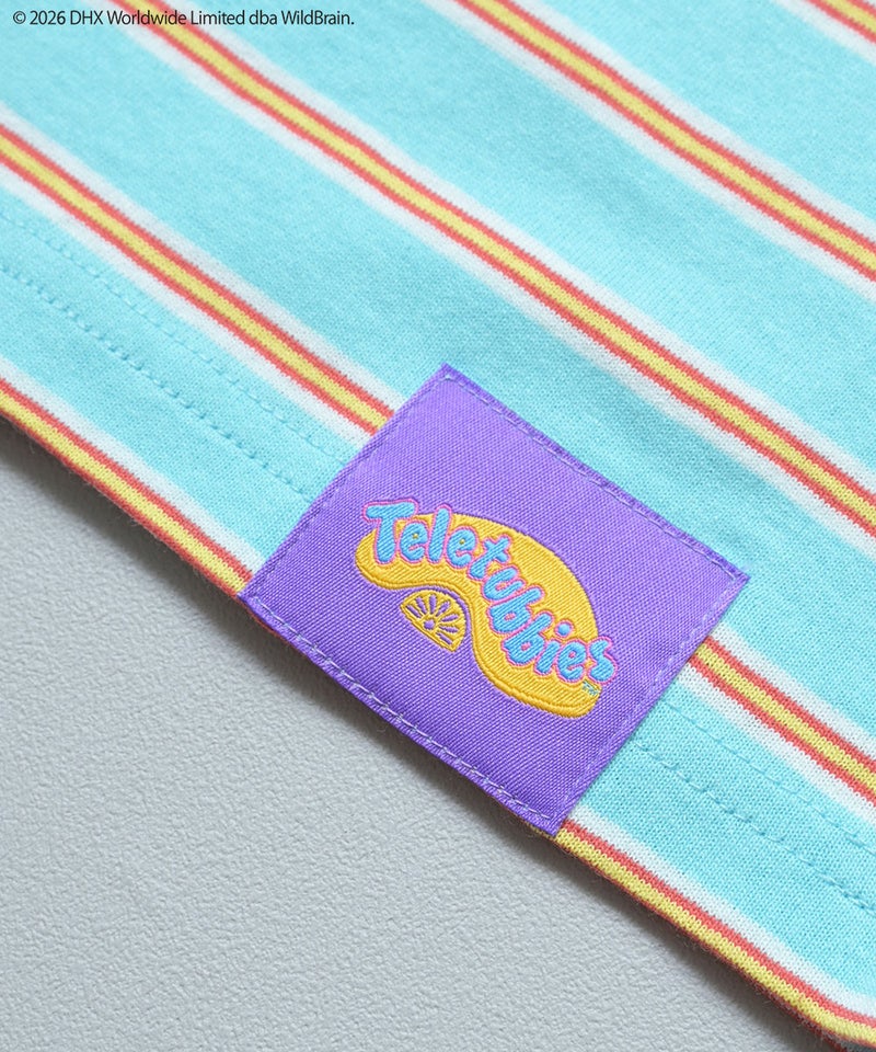 カラフルなボーダー柄に、フロントのテレタビーズプリントが映えるキャッチーなデザインです。
