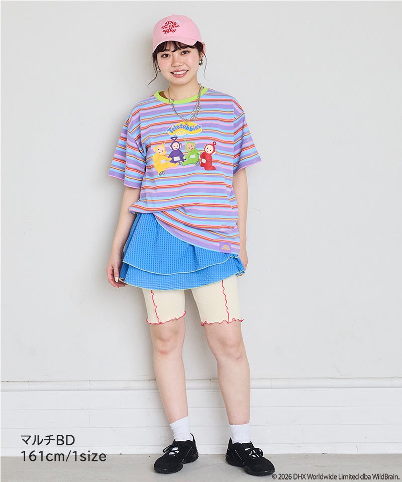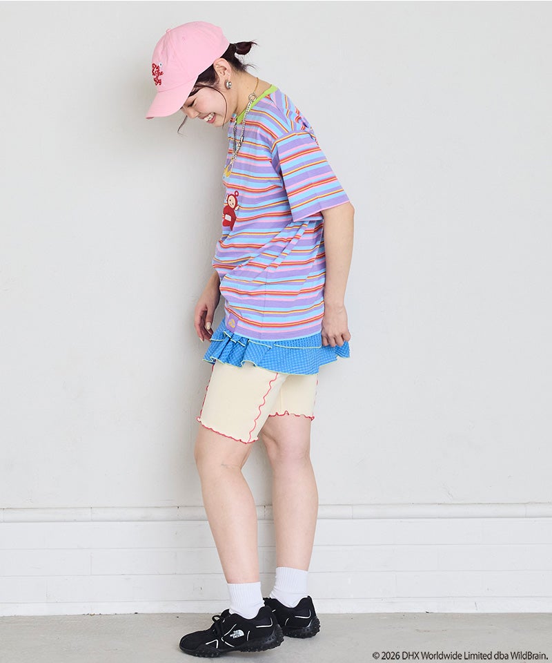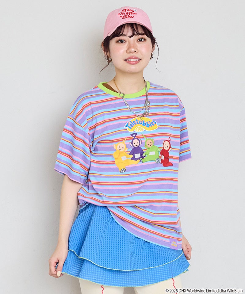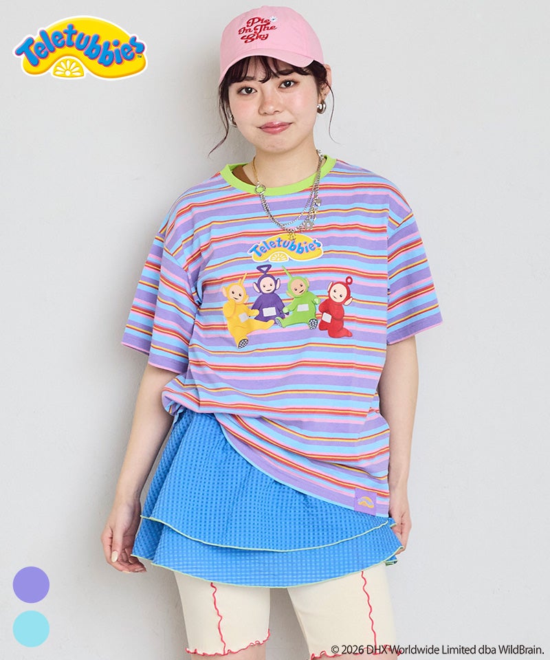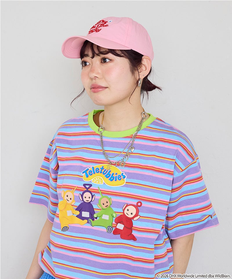 カラフルなボーダー柄に、フロントのテレタビーズプリントが映えるキャッチーなデザインです。