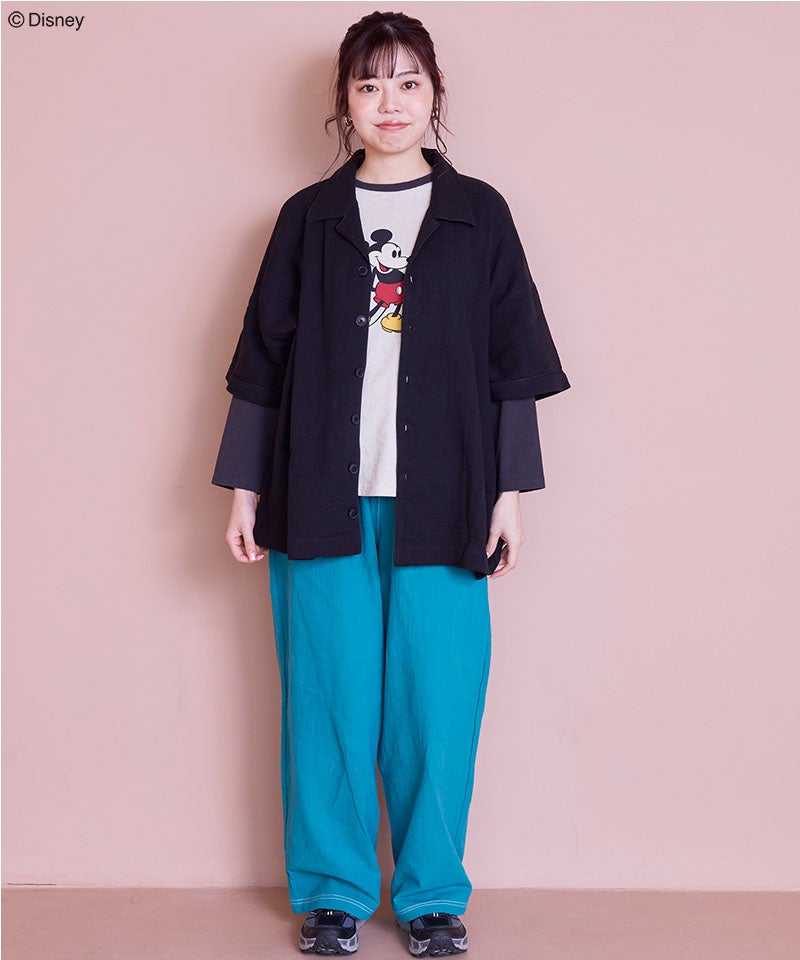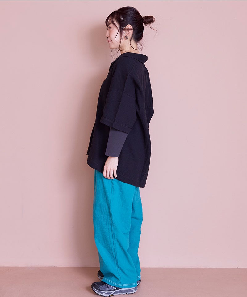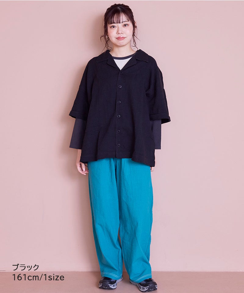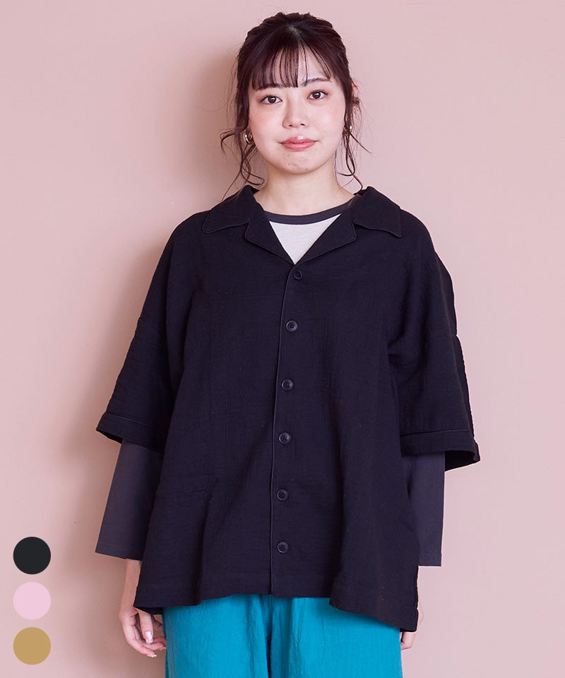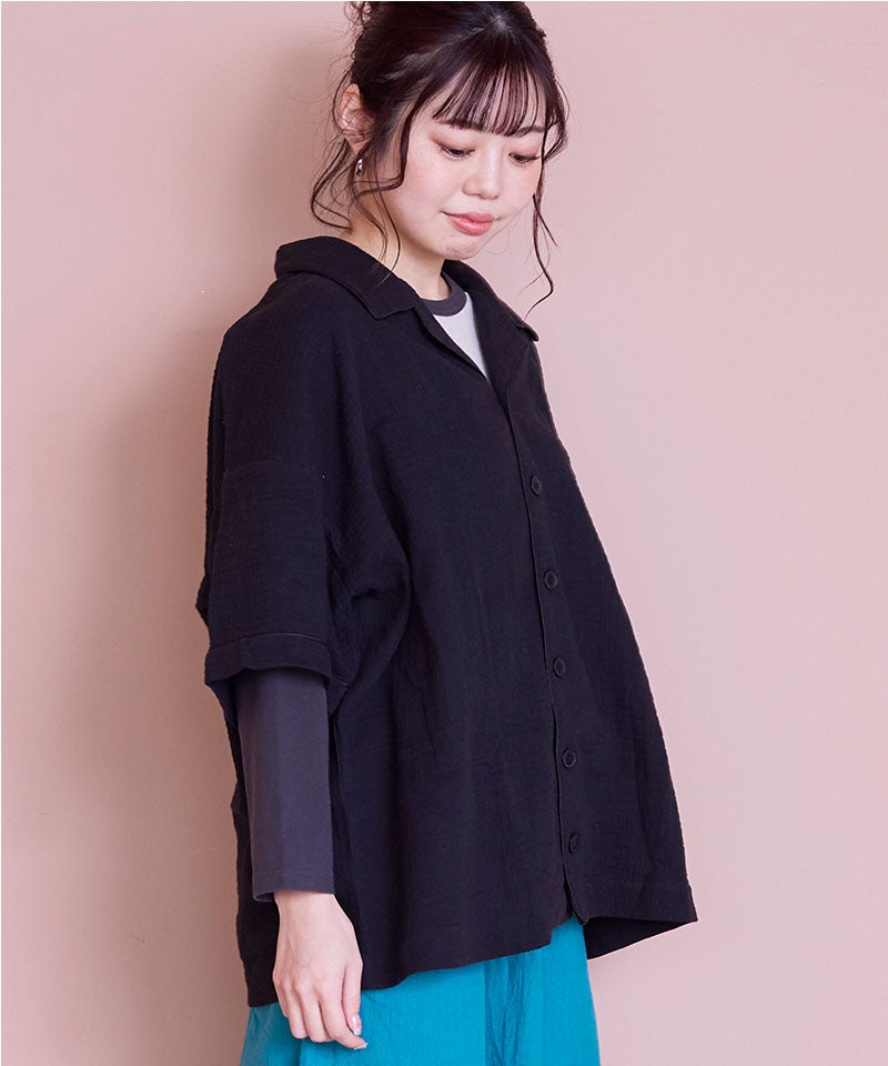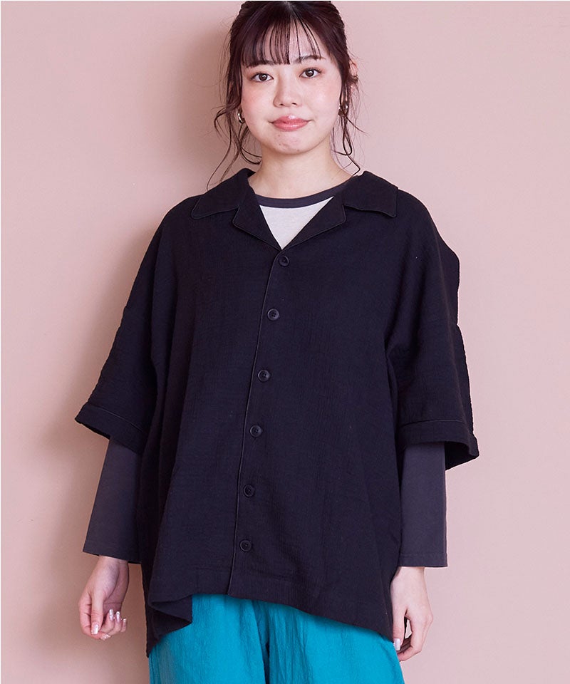 【親子お揃い】Wガーゼオープンカラーワイドシャツ/大人サイズ