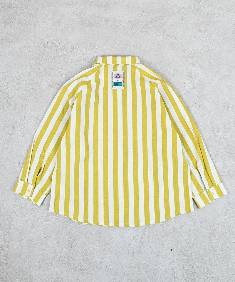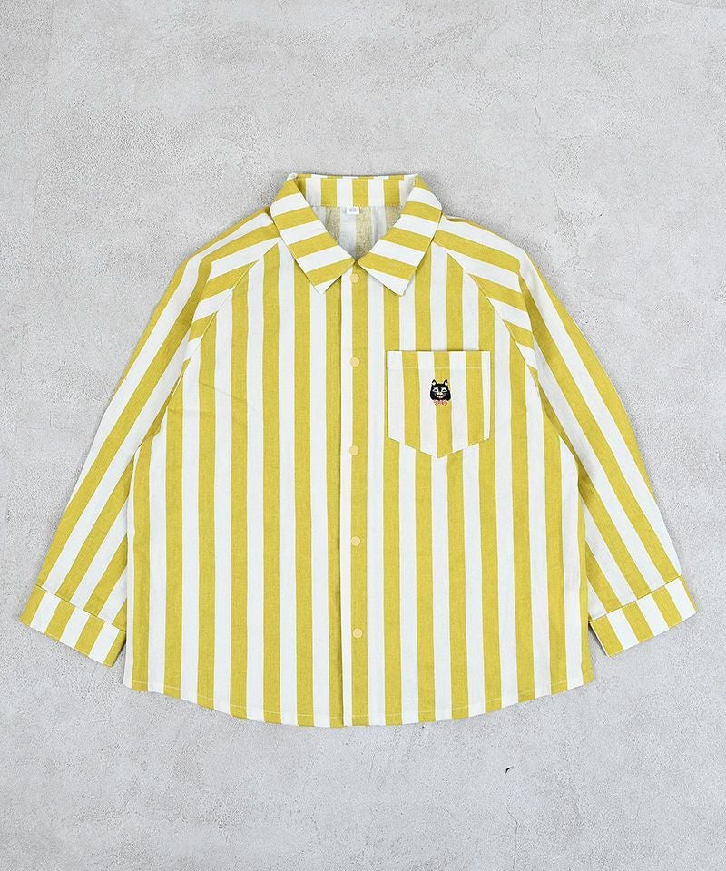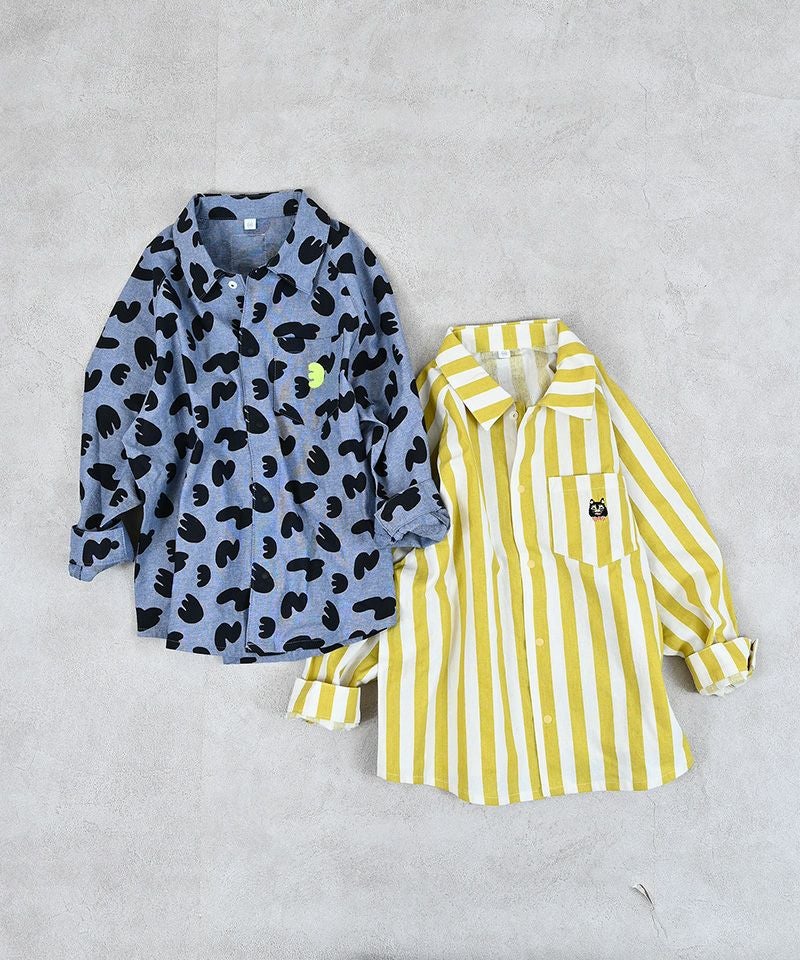 目を引く総柄デザインに、胸ポケットのワンポイント刺繍がアクセントになったラグランシャツです。