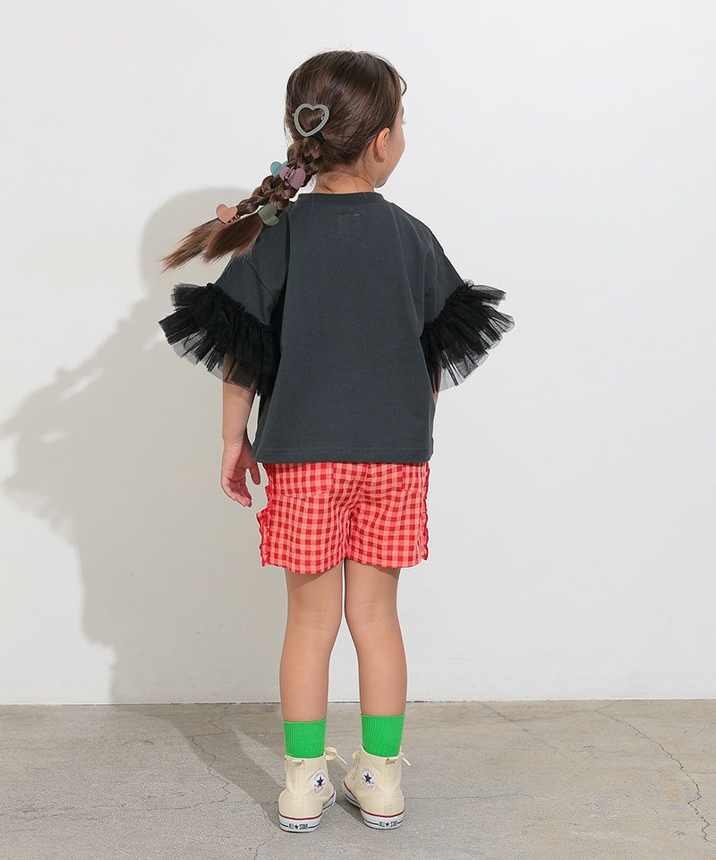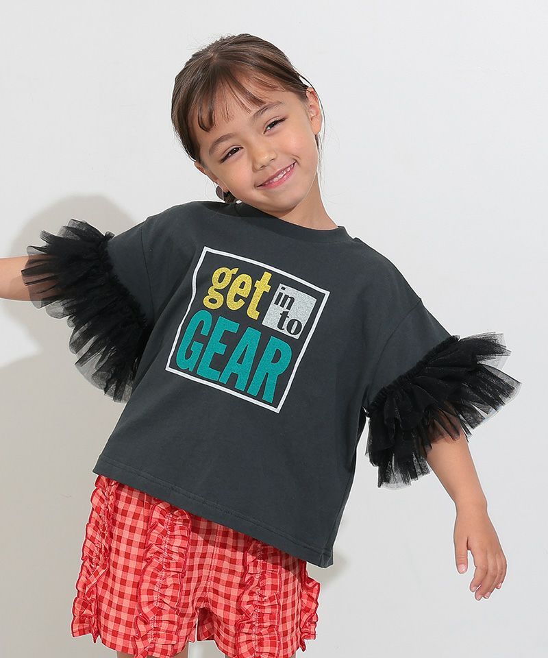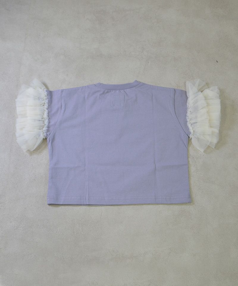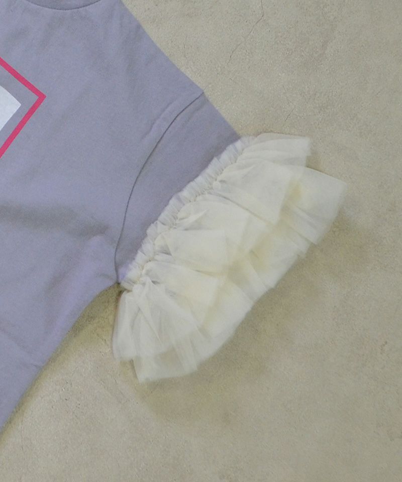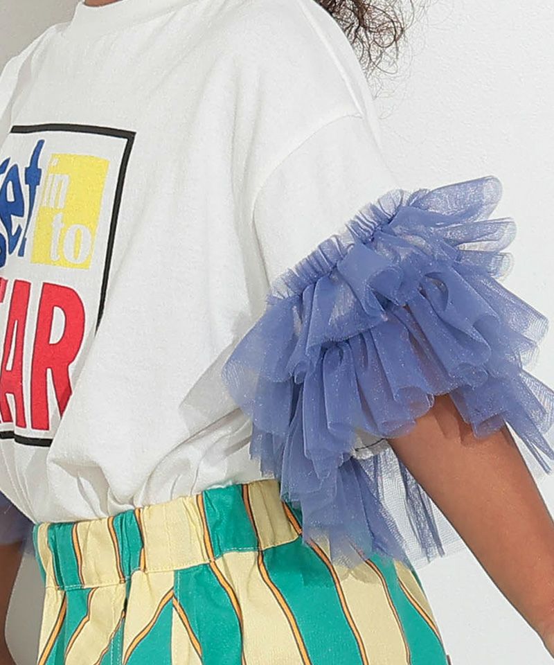 ボリュームたっぷりのチュールフリルがアクセントになる、フリルTシャツ。