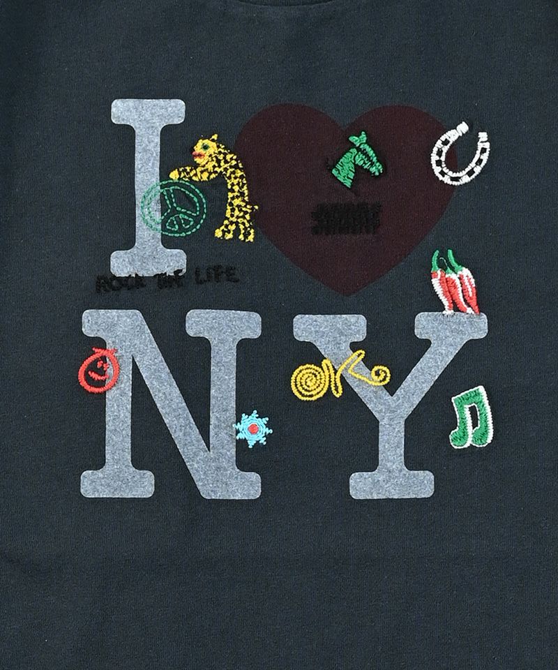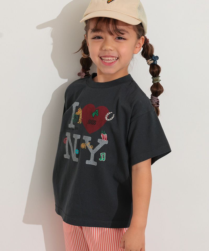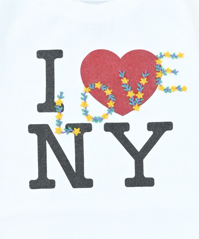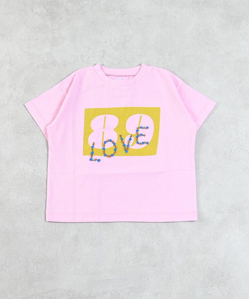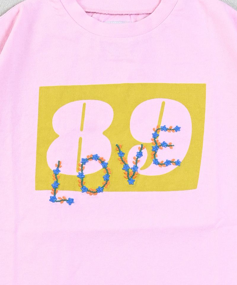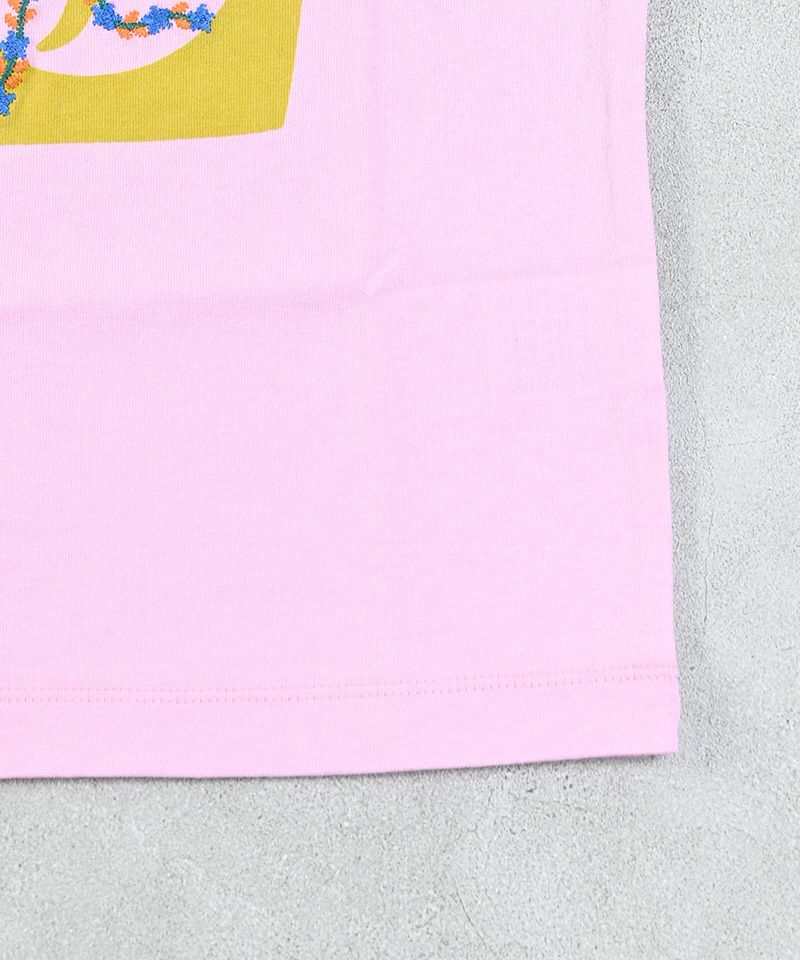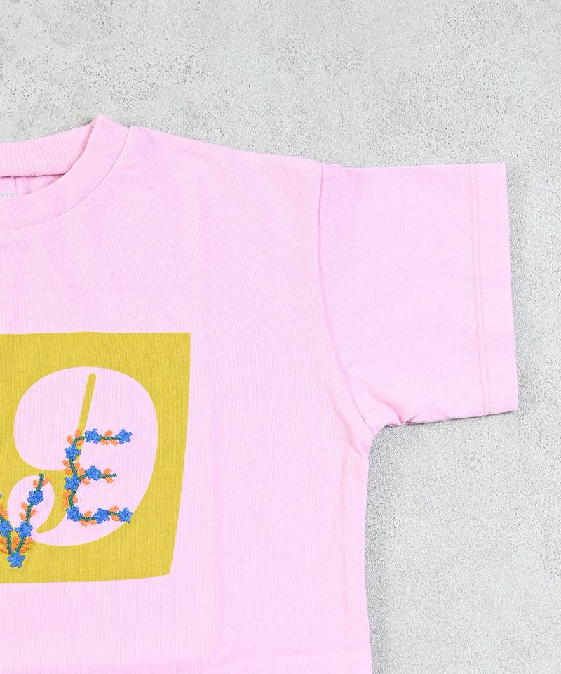 胸元のロゴモチーフの上にカラフルな刺繍が入った、オーバーステッチTシャツ。
