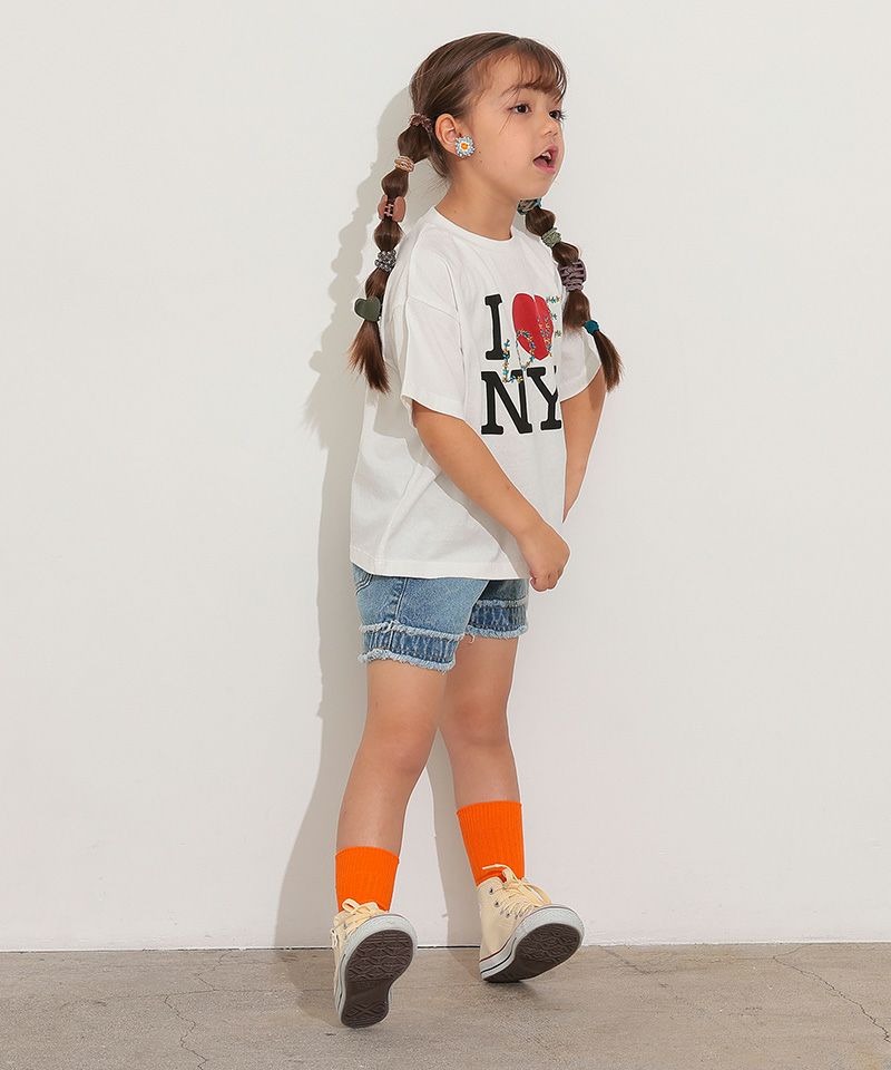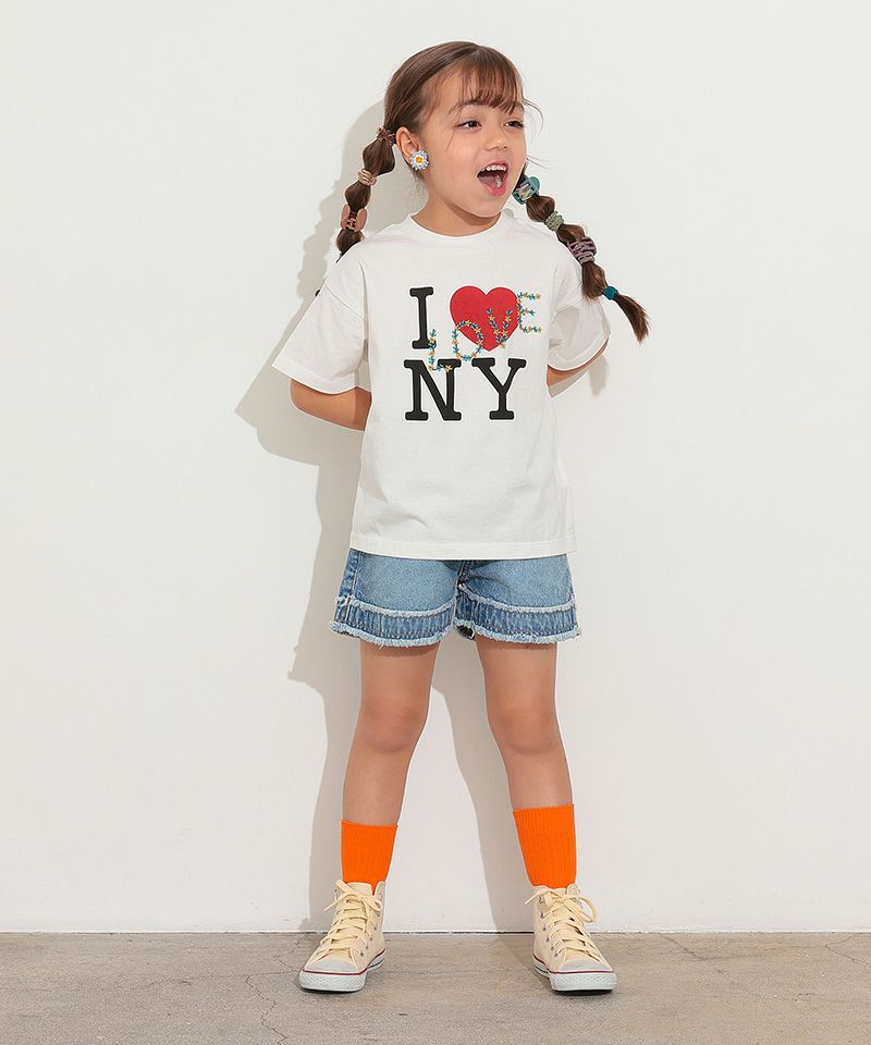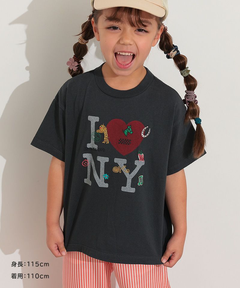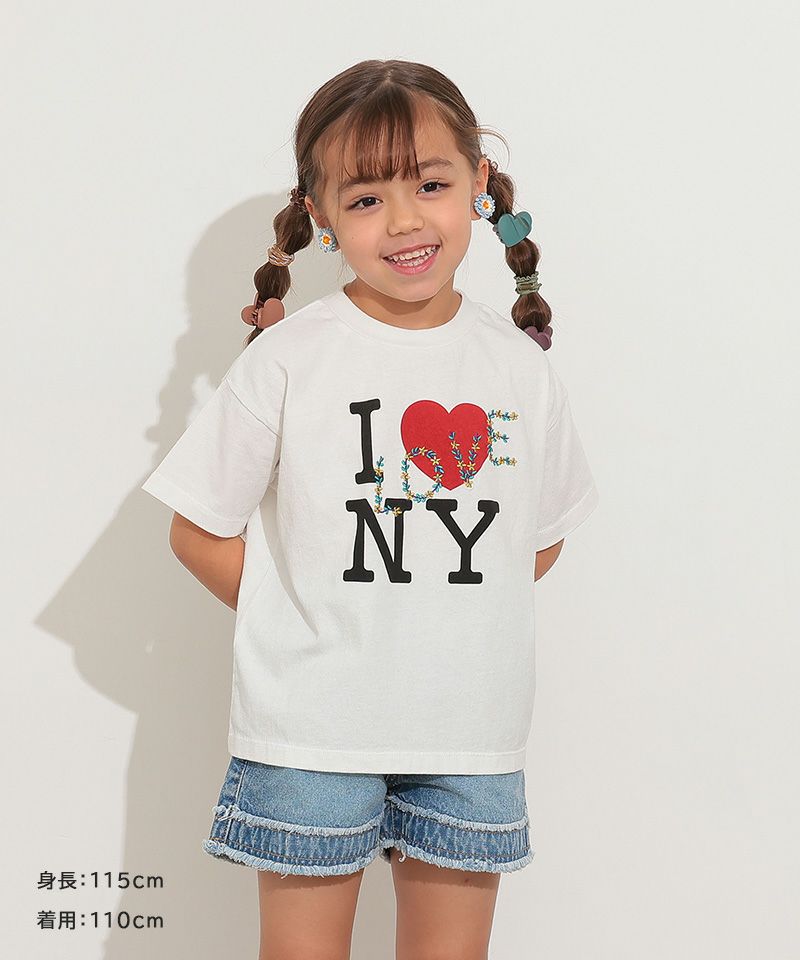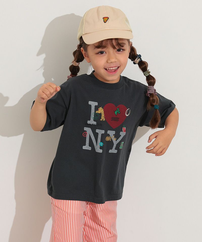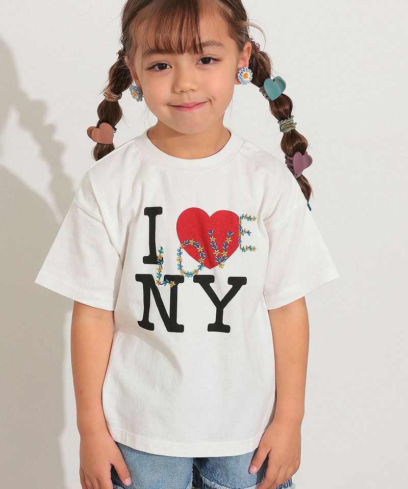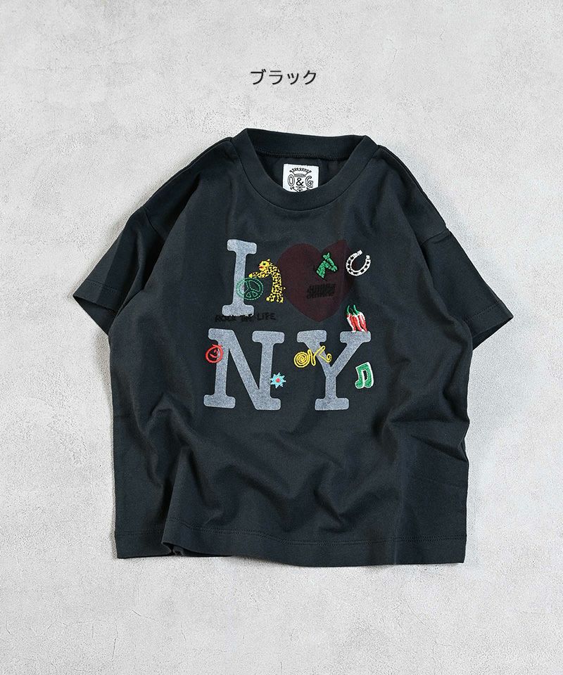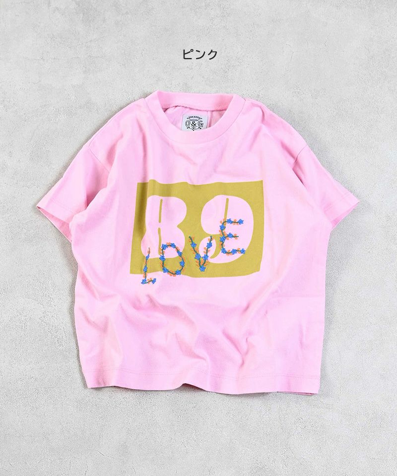 胸元のロゴモチーフの上にカラフルな刺繍が入った、オーバーステッチTシャツ。