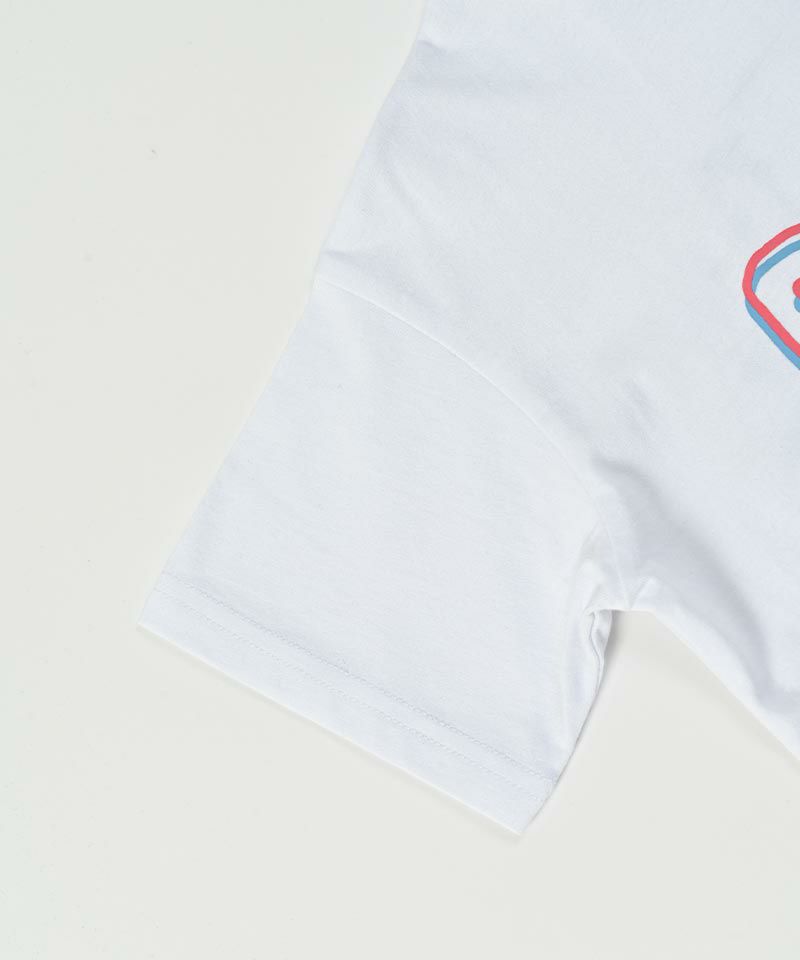 フロントには独特なカラーでプリントされたまぁるいフォルムのブランドネーム。