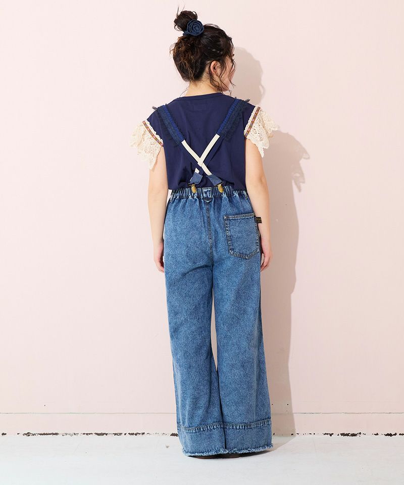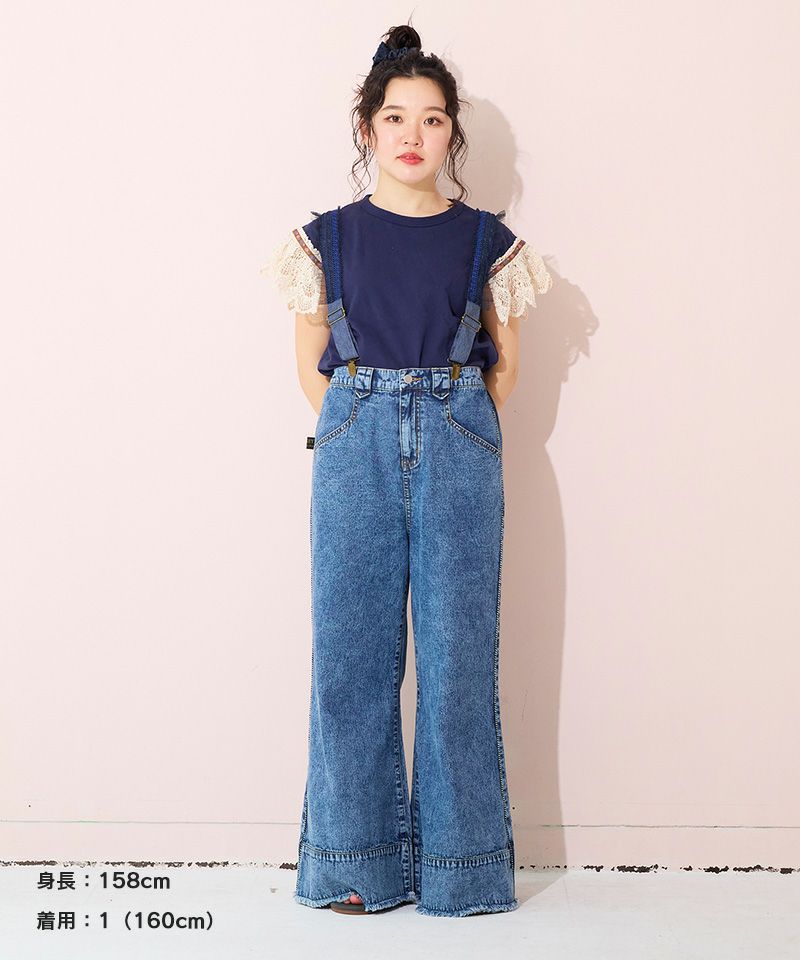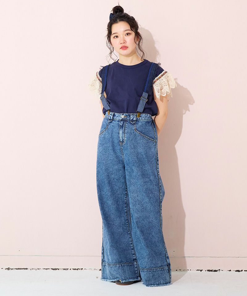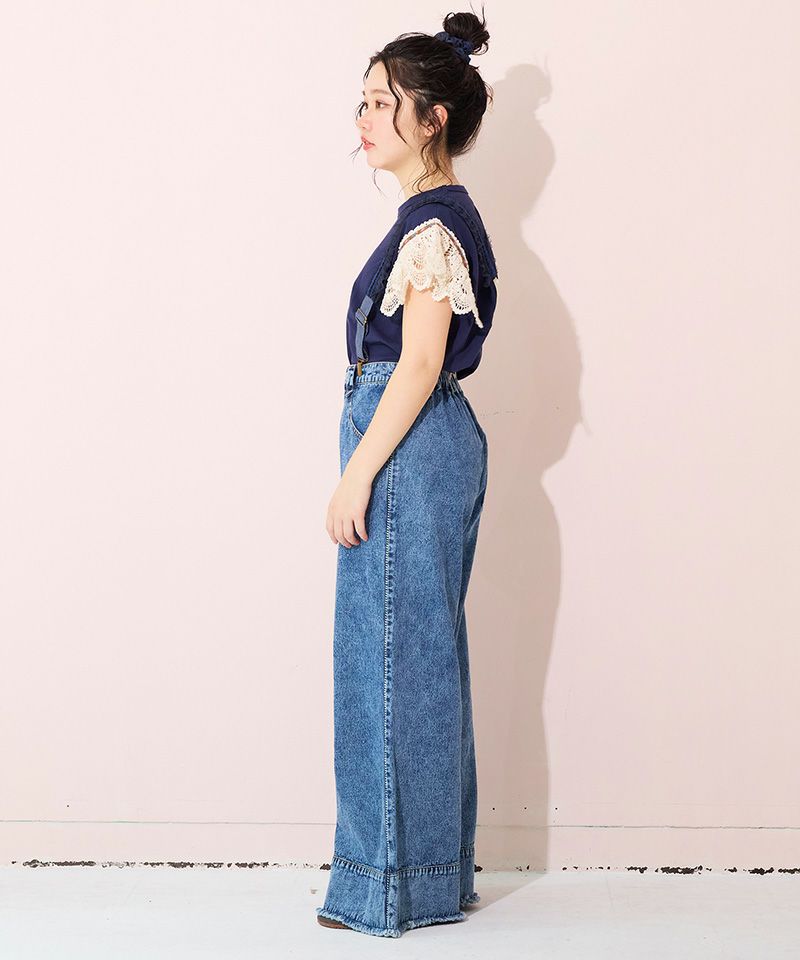 レースがアクセントになるので、シンプルなボトムスでOK。