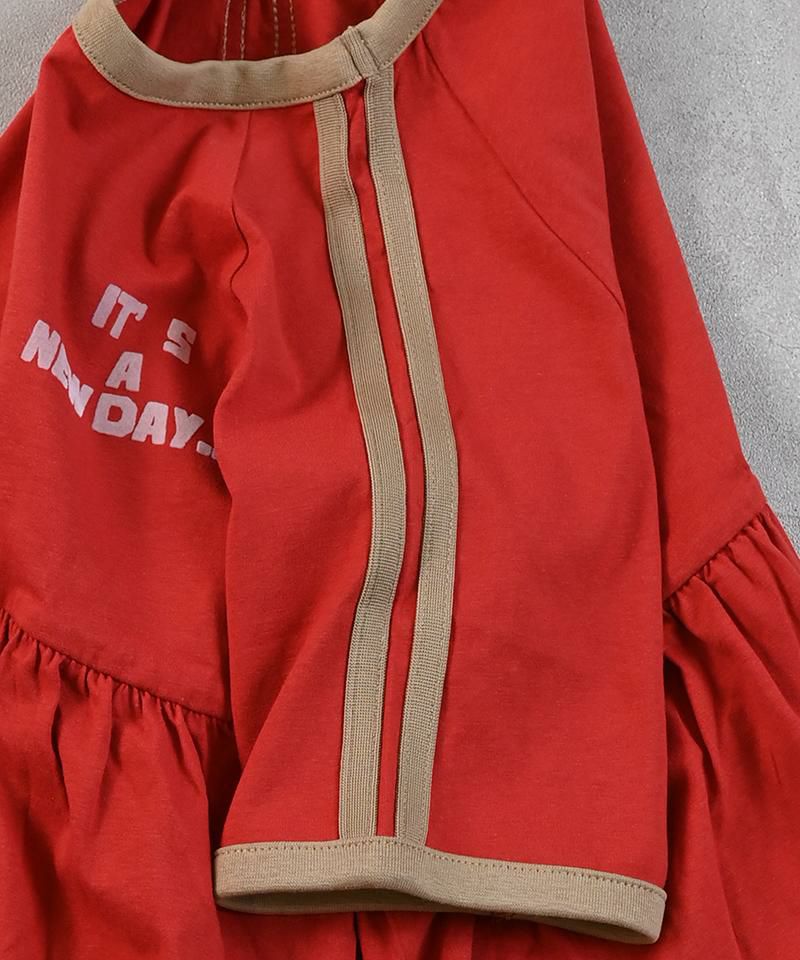 袖のラインと、首元・袖のパイピング配色がアクセントに。