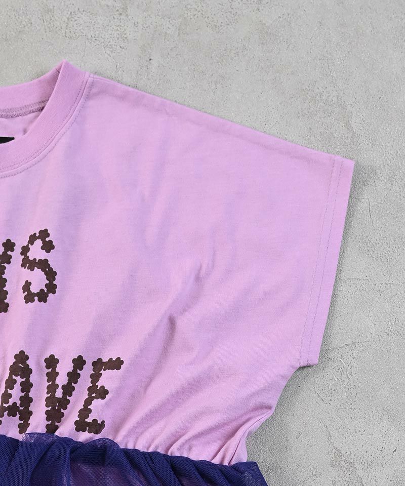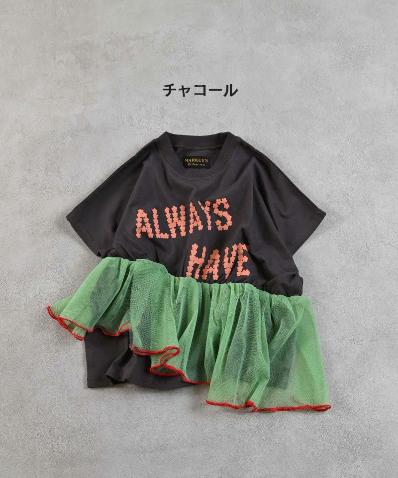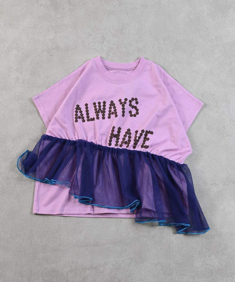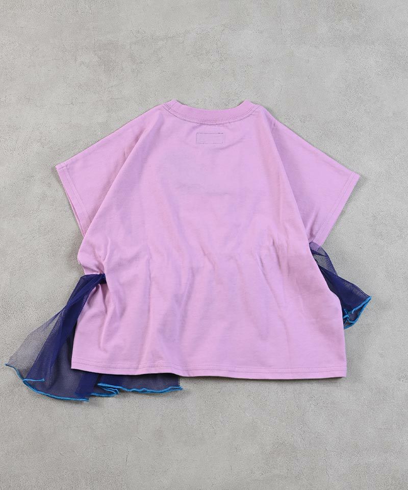 斜めに入ったチュールからTシャツが♪甘さ控えめなデザインです。