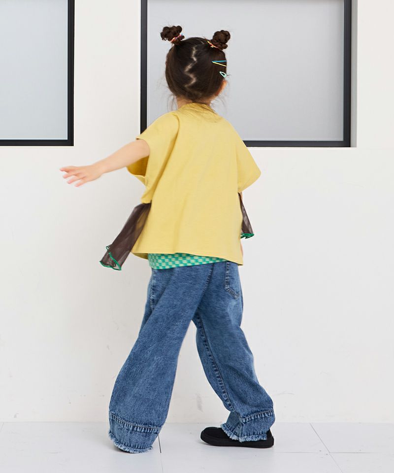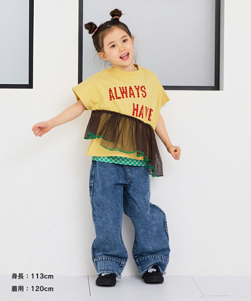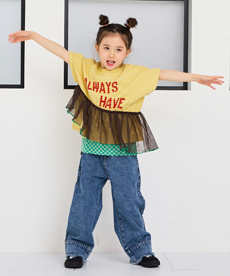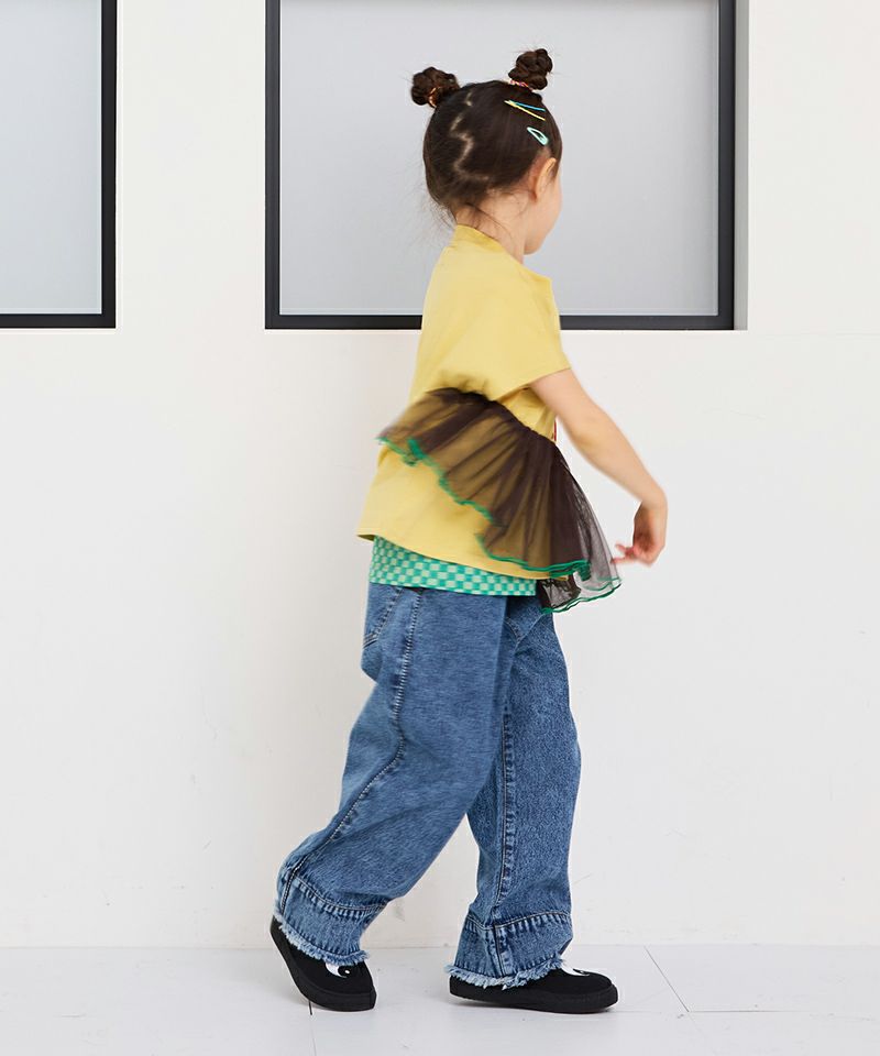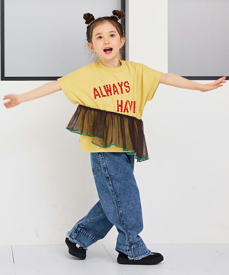 斜めに入ったチュールからTシャツが♪甘さ控えめなデザインです。