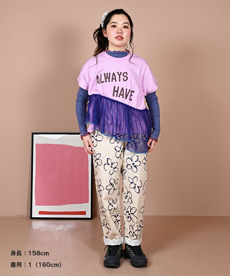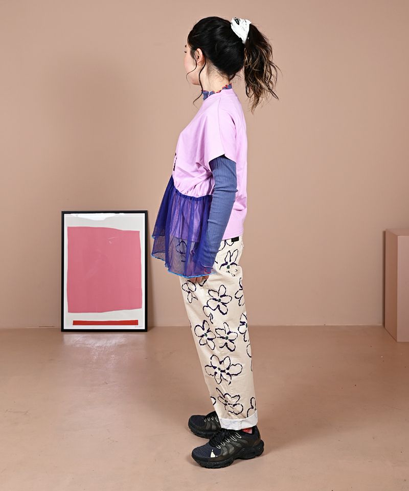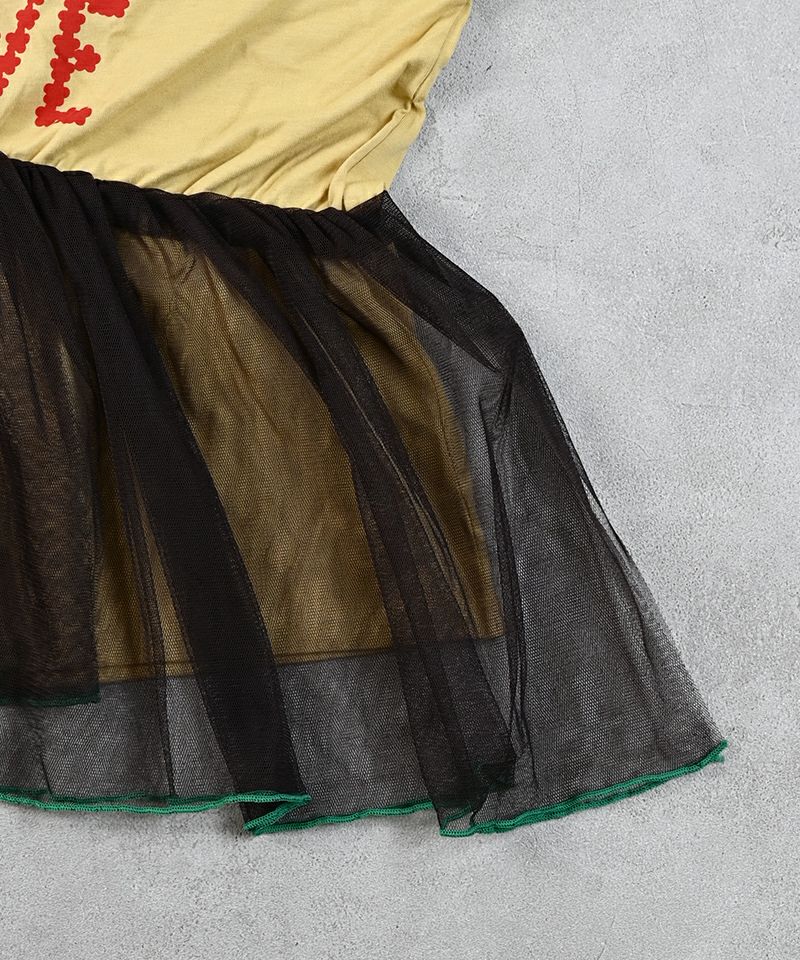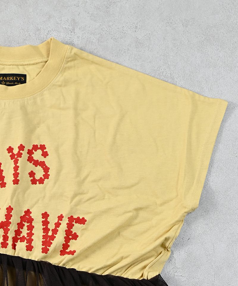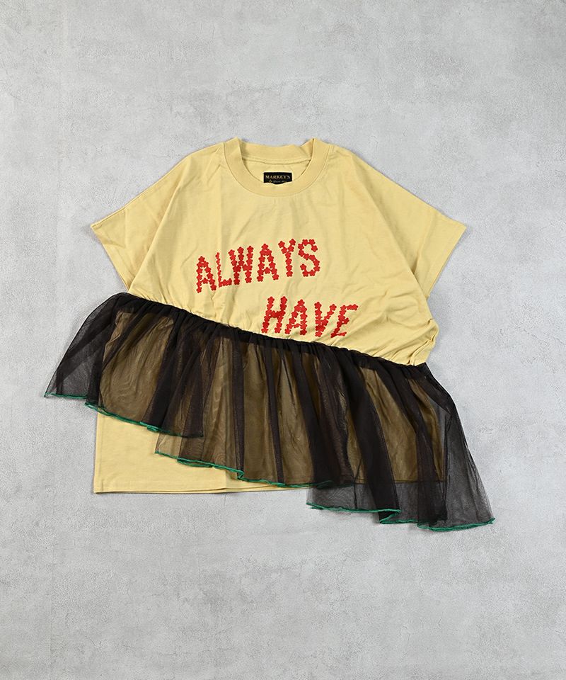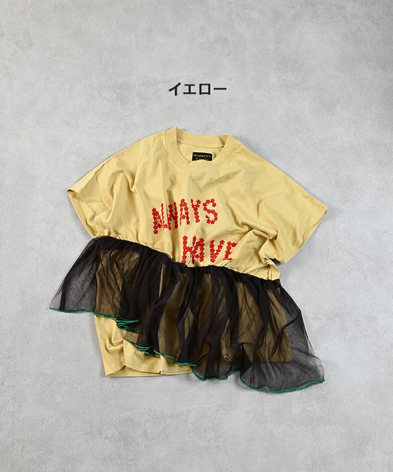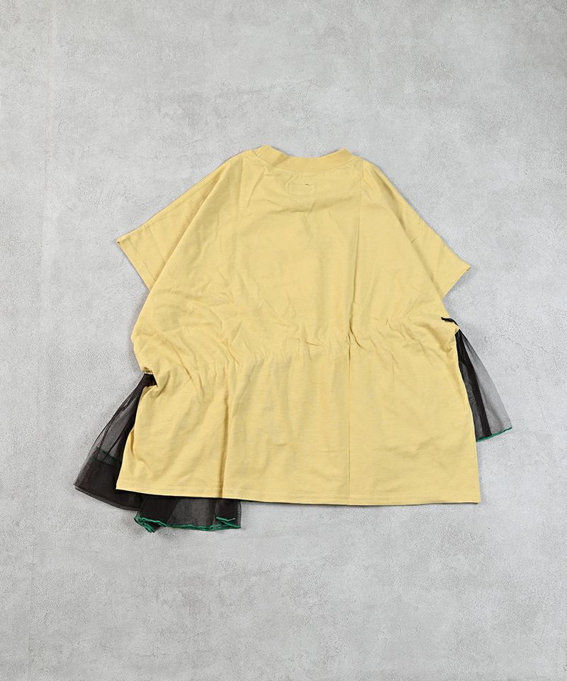 斜めに入ったチュールからTシャツが♪甘さ控えめなデザインです。