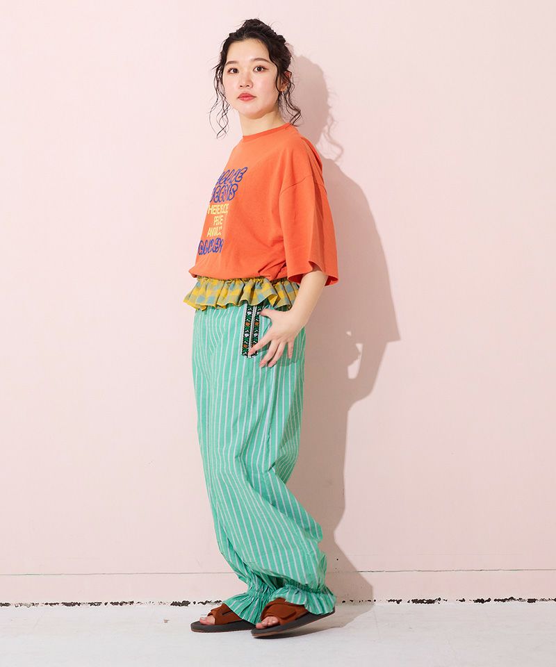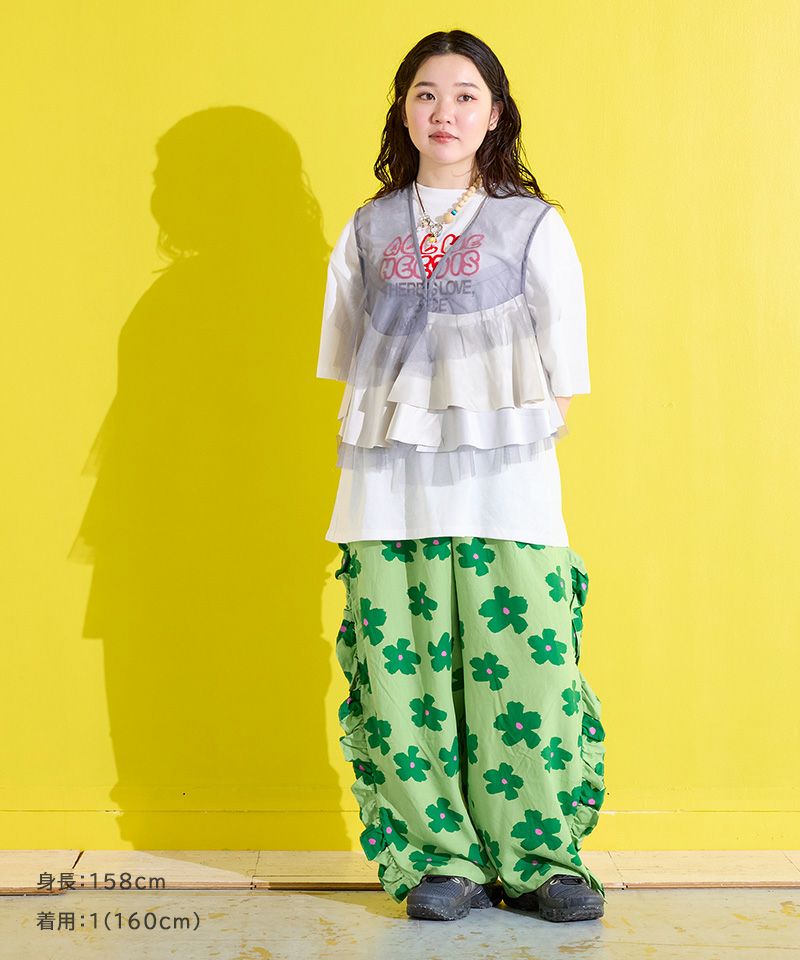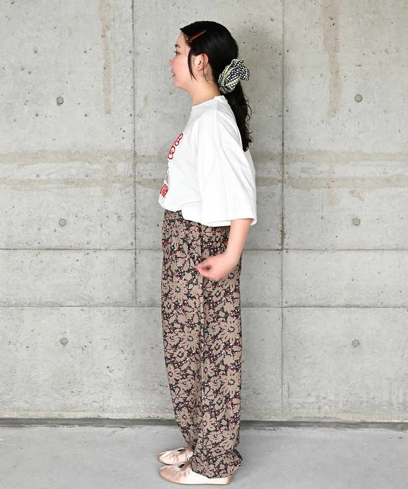シェフパンツやタックパンツなど、総柄パンツとのコーデも◎