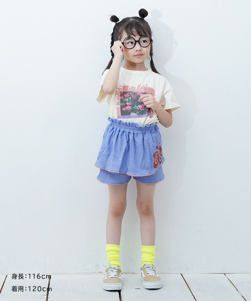 リブモチーフプリントキュロットパンツ