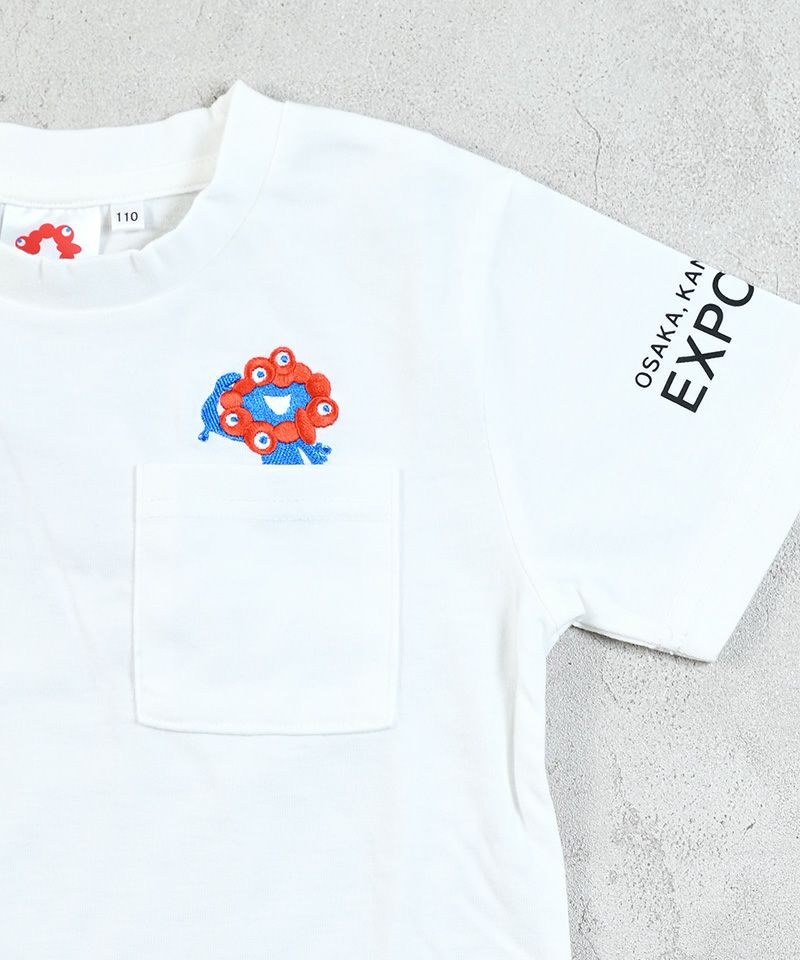 大阪・関西万博公式キャラクター「ミャクミャク」がポッケから覗いているデザイン。