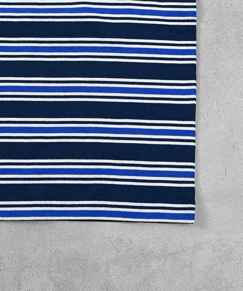配色のマルチボーダーと、ブランドロゴの刺繍が印象的。