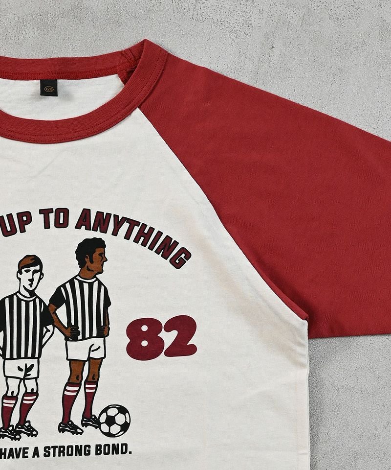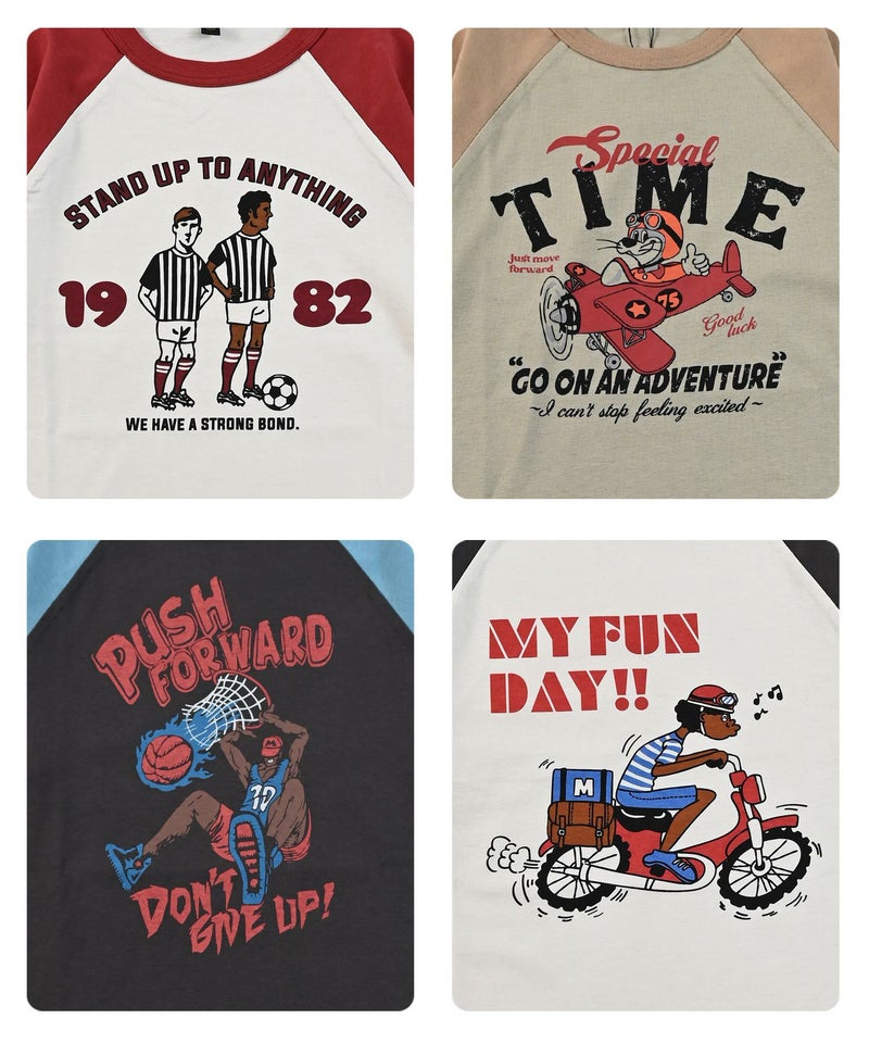 ラグランスリーブの切り替えしカラー配色もポイントです。
