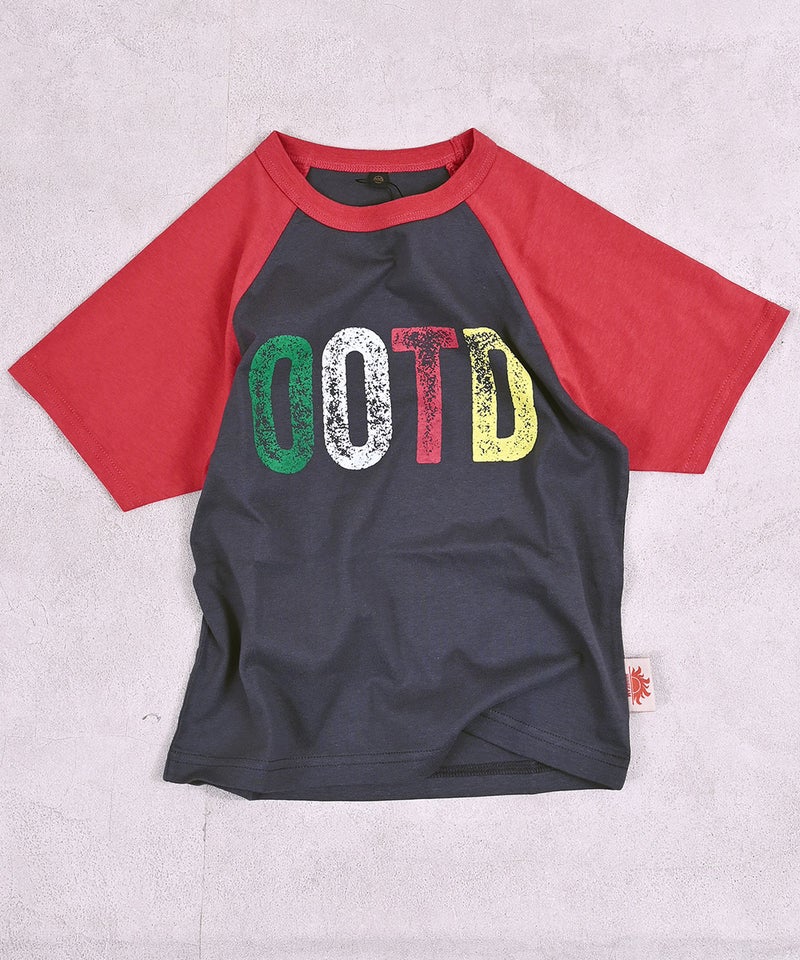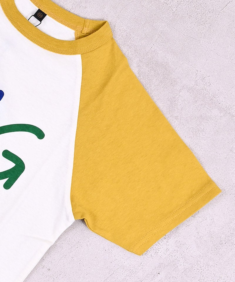 配色が目を引くラグランスリーブで1枚でサマになるTシャツです。