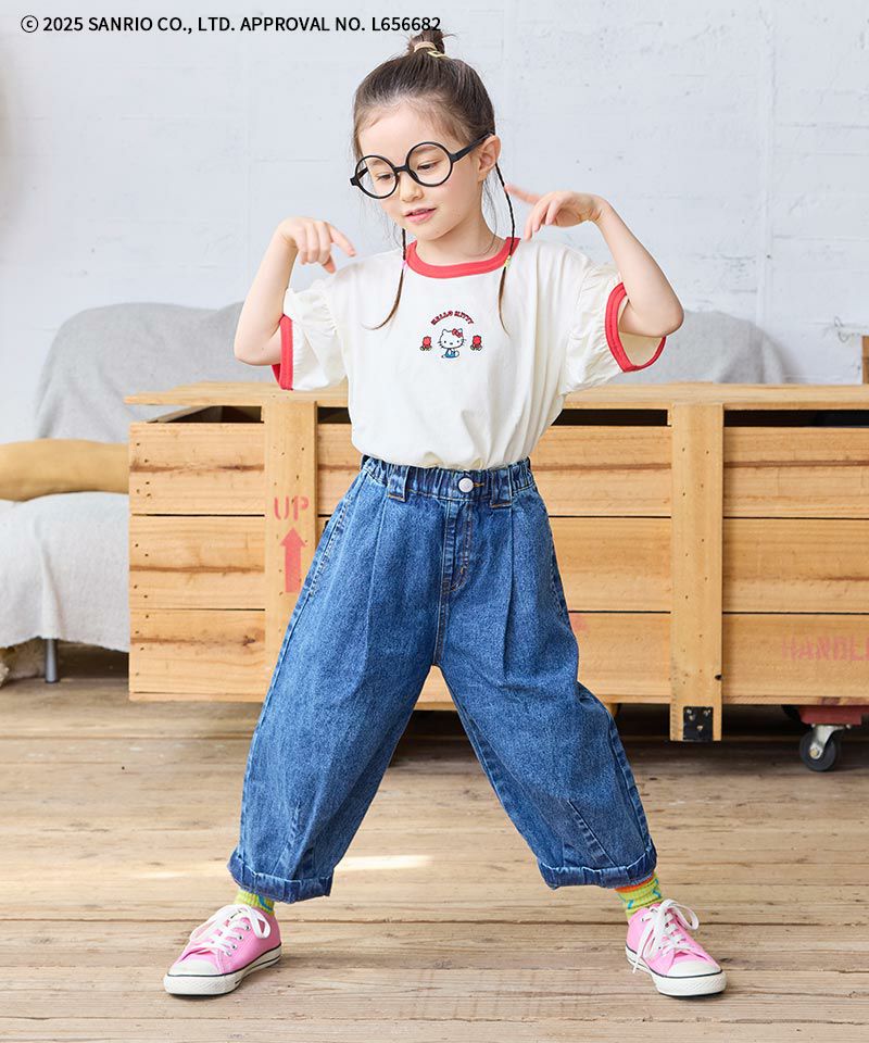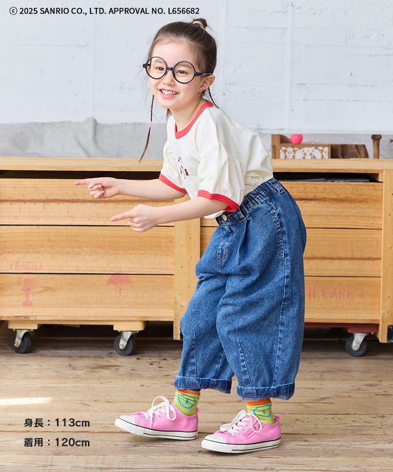 1枚で主役になるかわいいトップスなので、ボトムスを選びません。