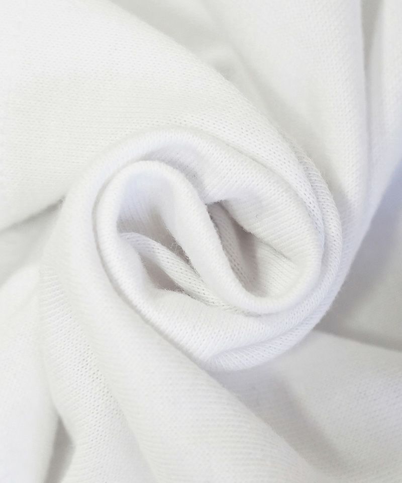 風合いのよいオーガニックコットンと、リサイクルポリエステルを使用した、やわらかくしなやかな肌触りのニット生地を採用しています。