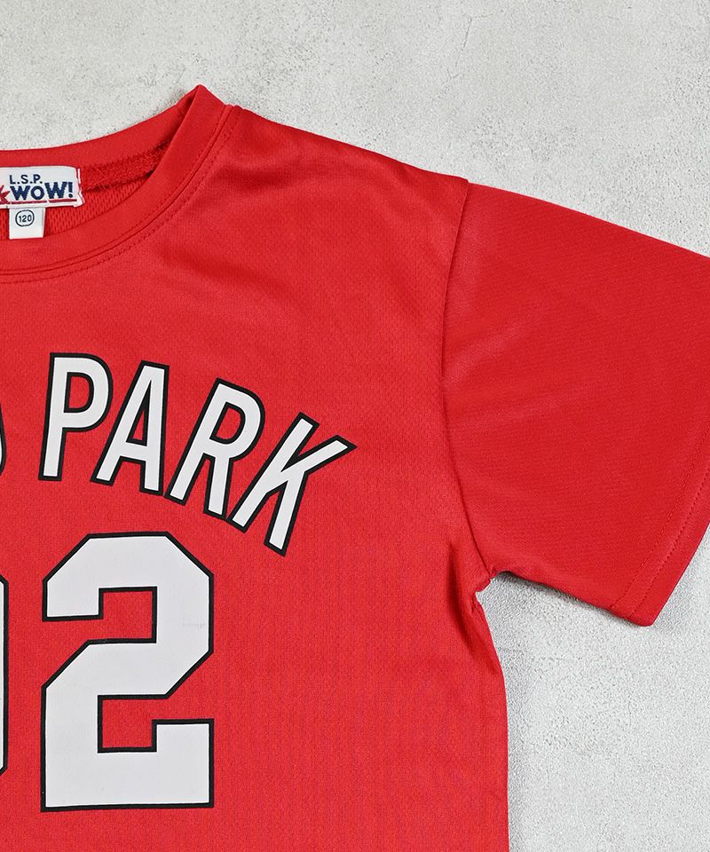 サッカーのユニフォームのようなスポーティーテイストのTシャツ。