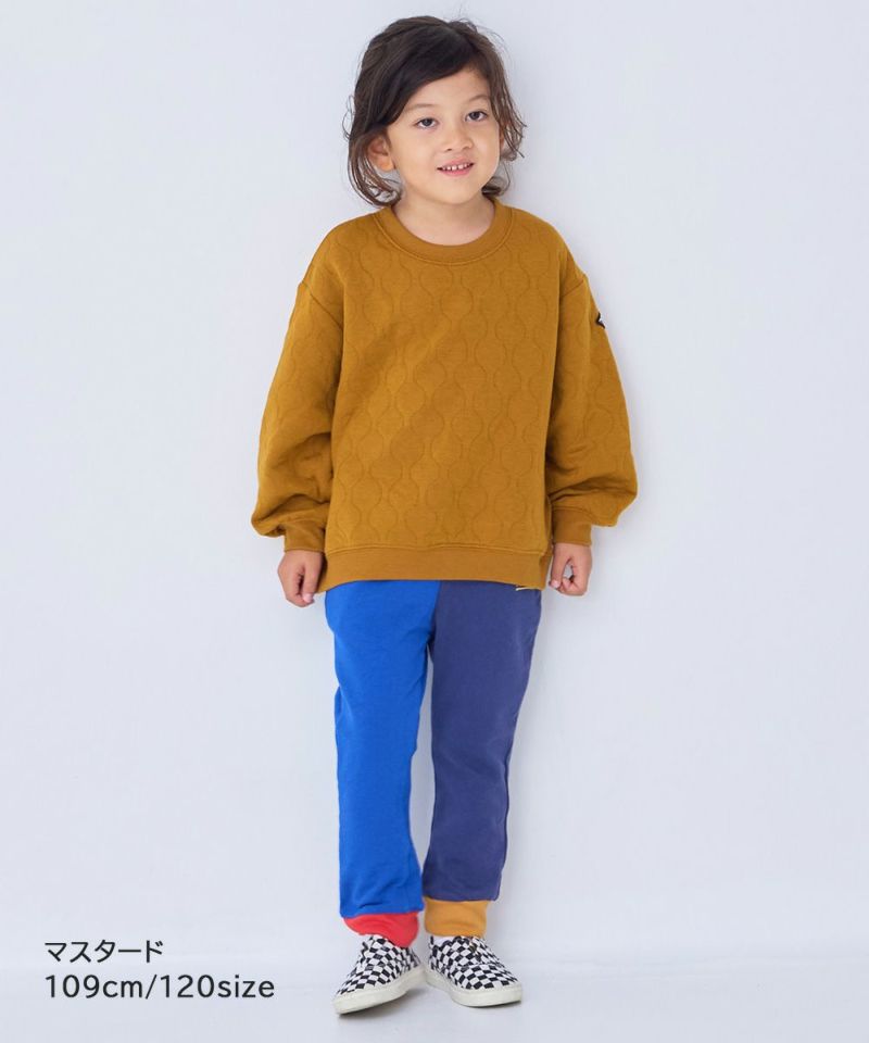 ふっくらと中わたを挟んだキルト素材のトレーナー生地。