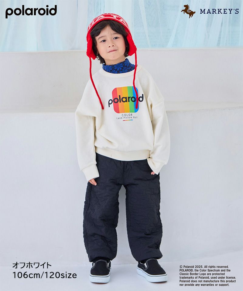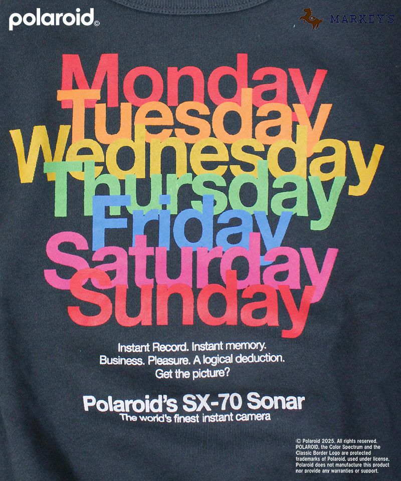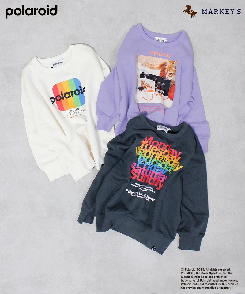 大人顔負けのプリントが目を引くPolaroidとの別注アイテム。