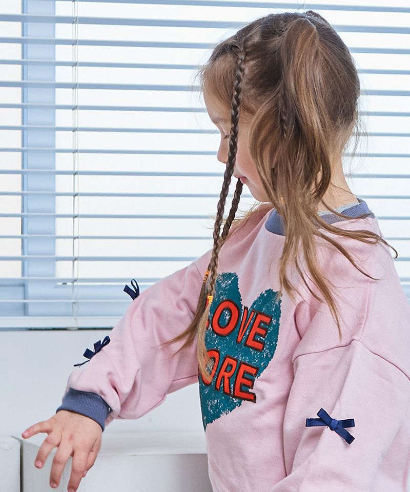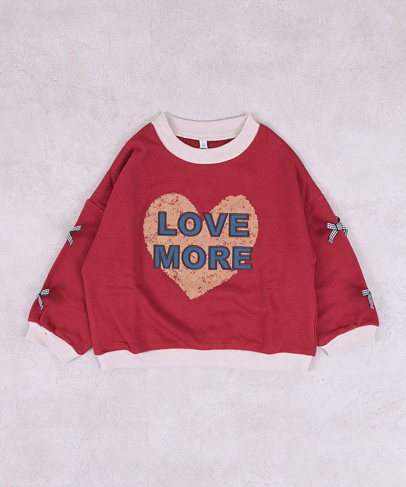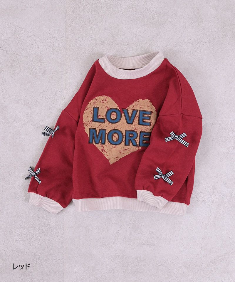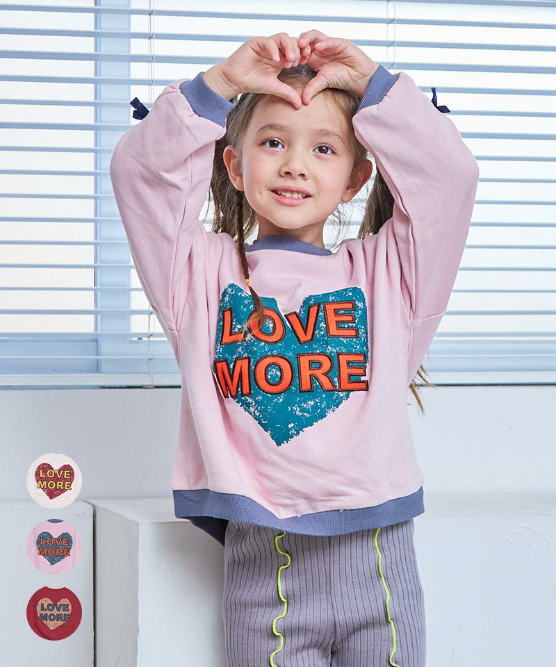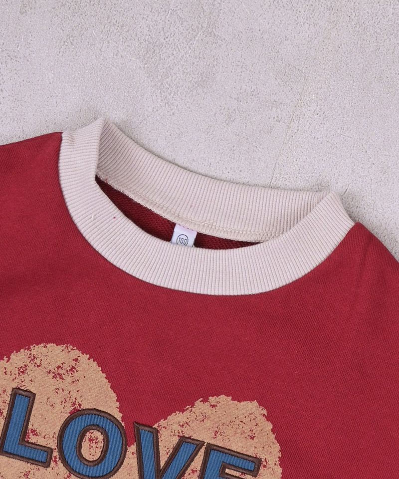 フロントに大きくプリントされたハートロゴが主役の裏毛トレーナー。