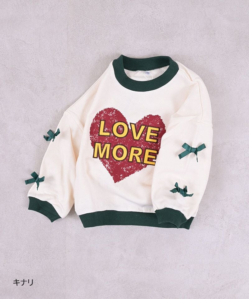 フロントに大きくプリントされたハートロゴが主役の裏毛トレーナー。