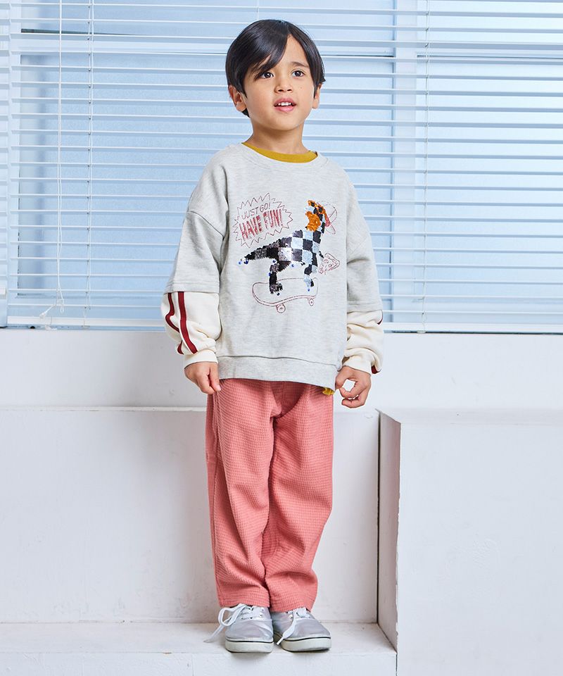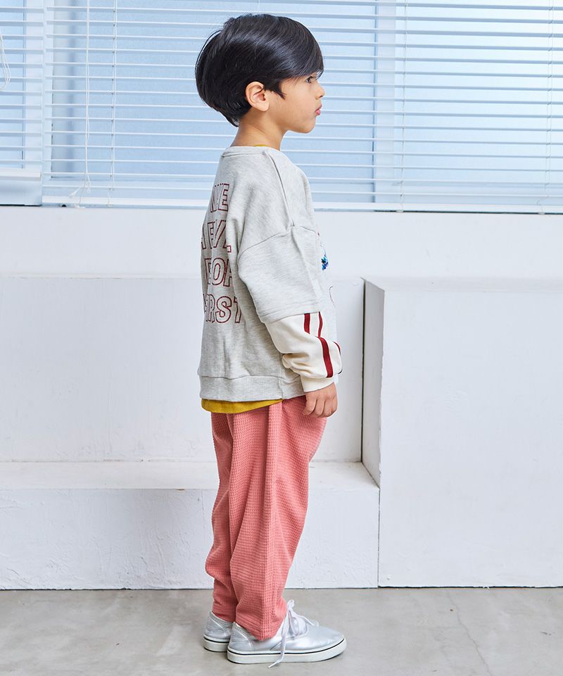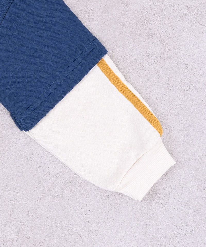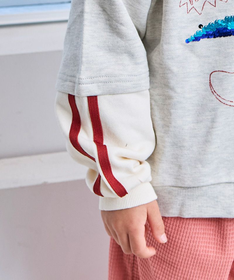 裏毛素材でやわらかく、毎日着やすいフェイクレイヤード風トレーナー。