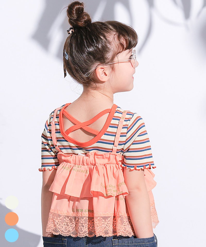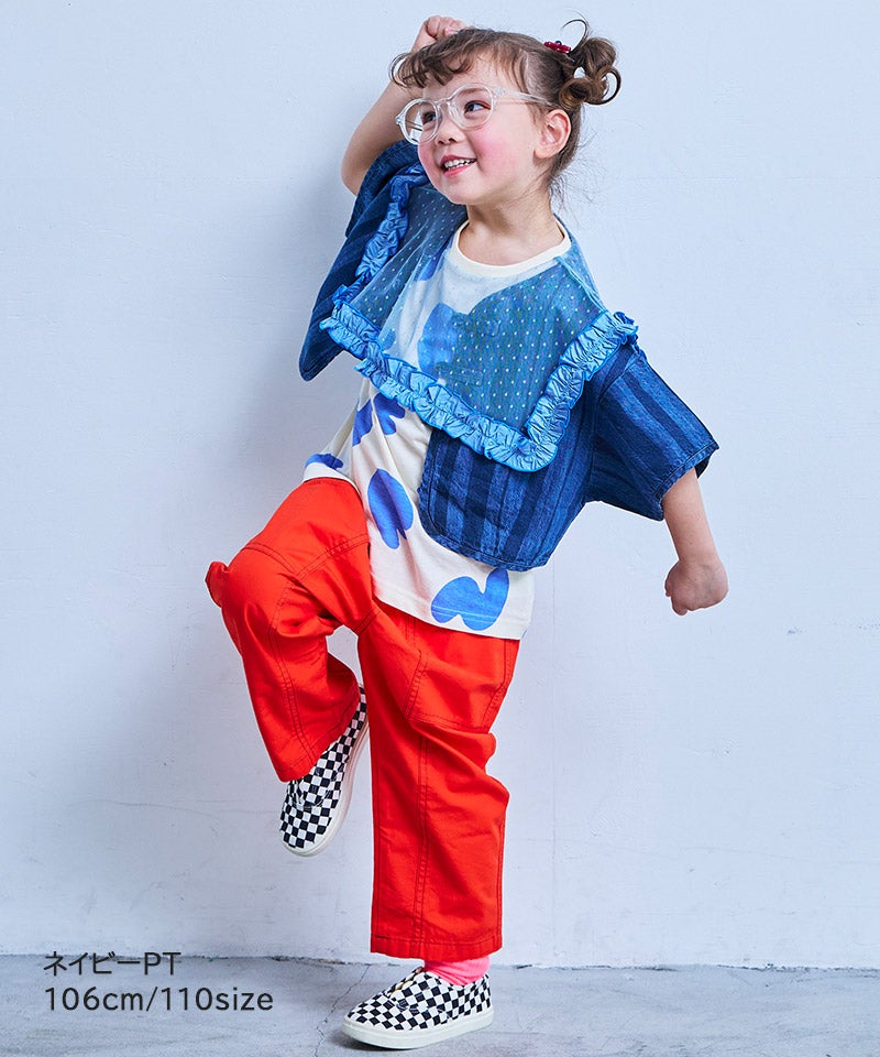 【親子お揃い】チュールフリルカレッジTシャツ