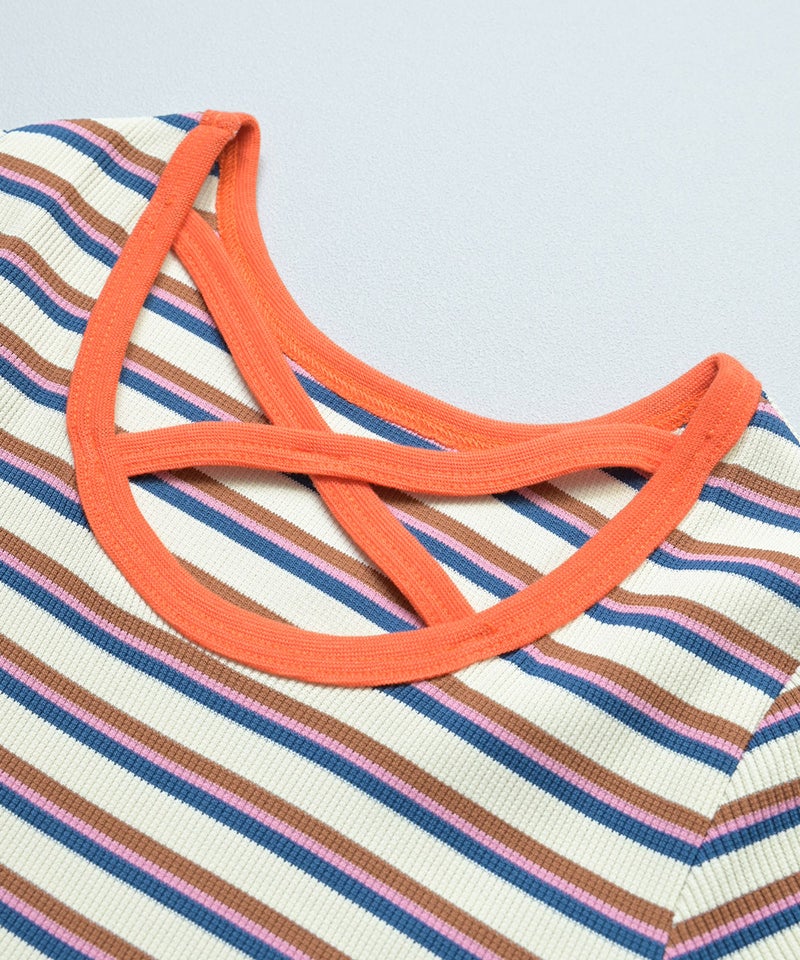 サキソメボーダーハンソデカットソー