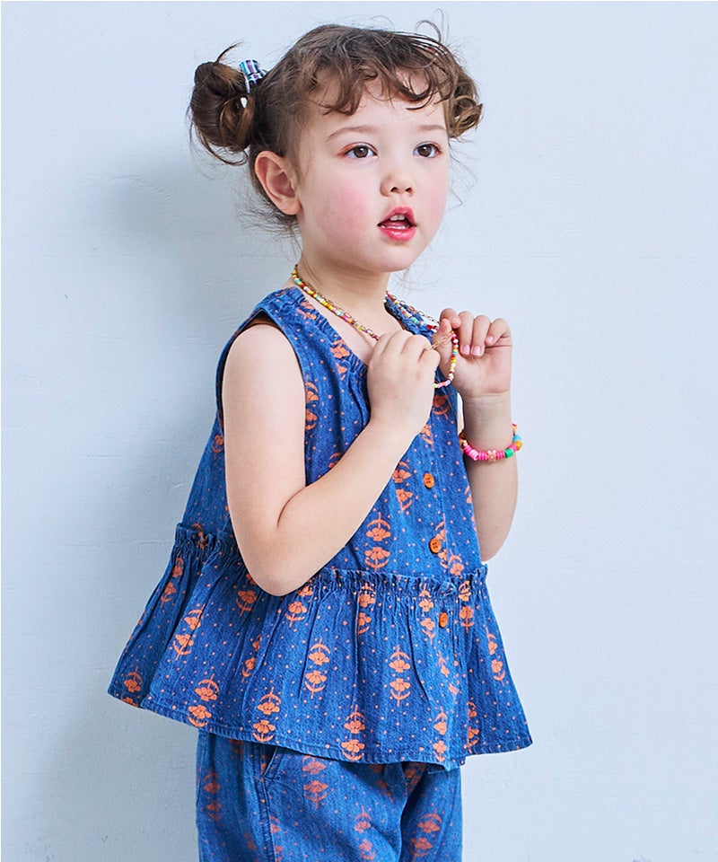 【親子お揃い】ローンビッグカラーノースリーブブラウス