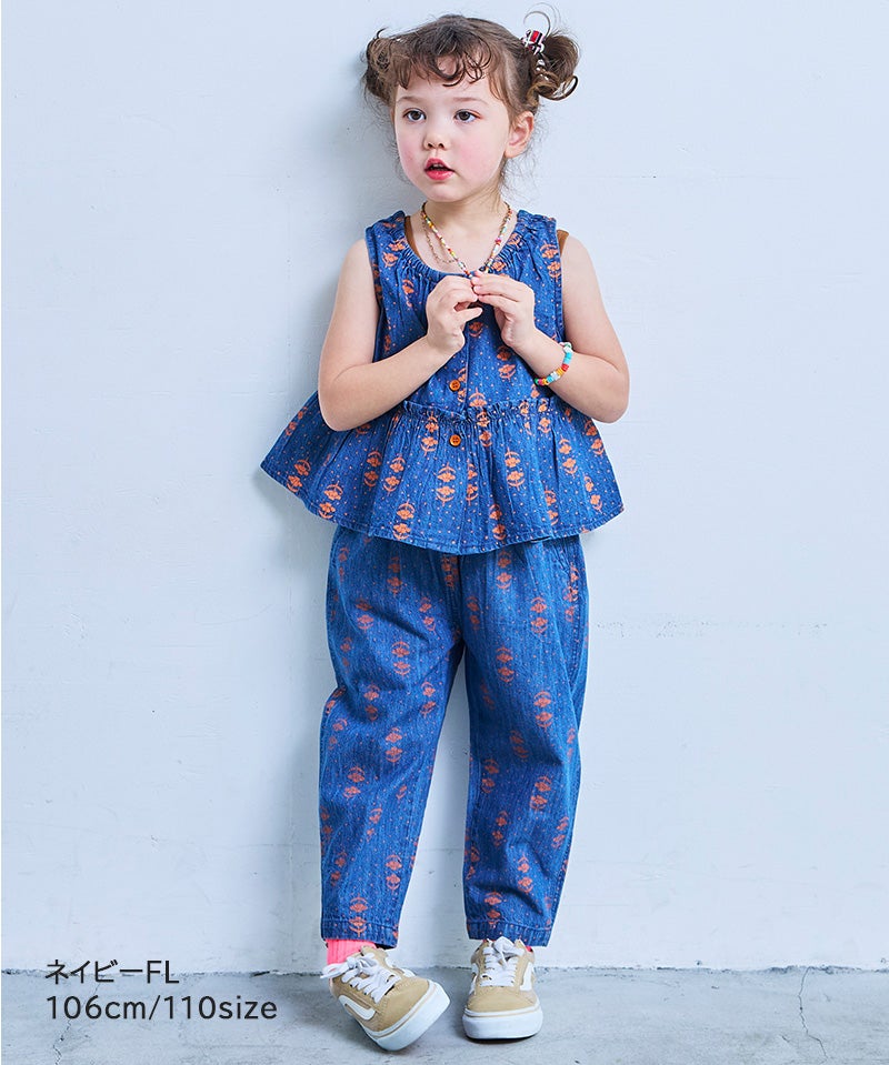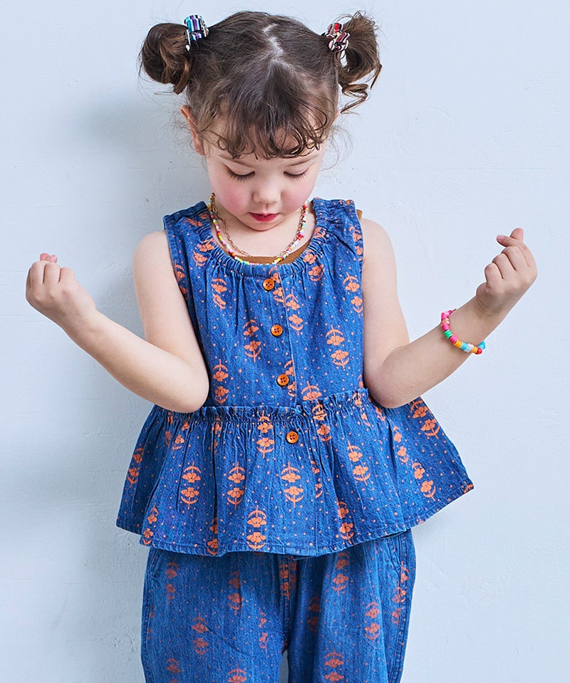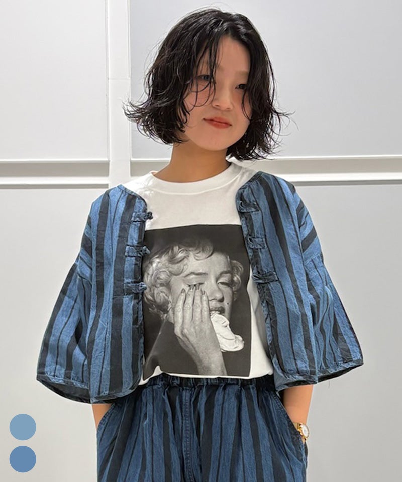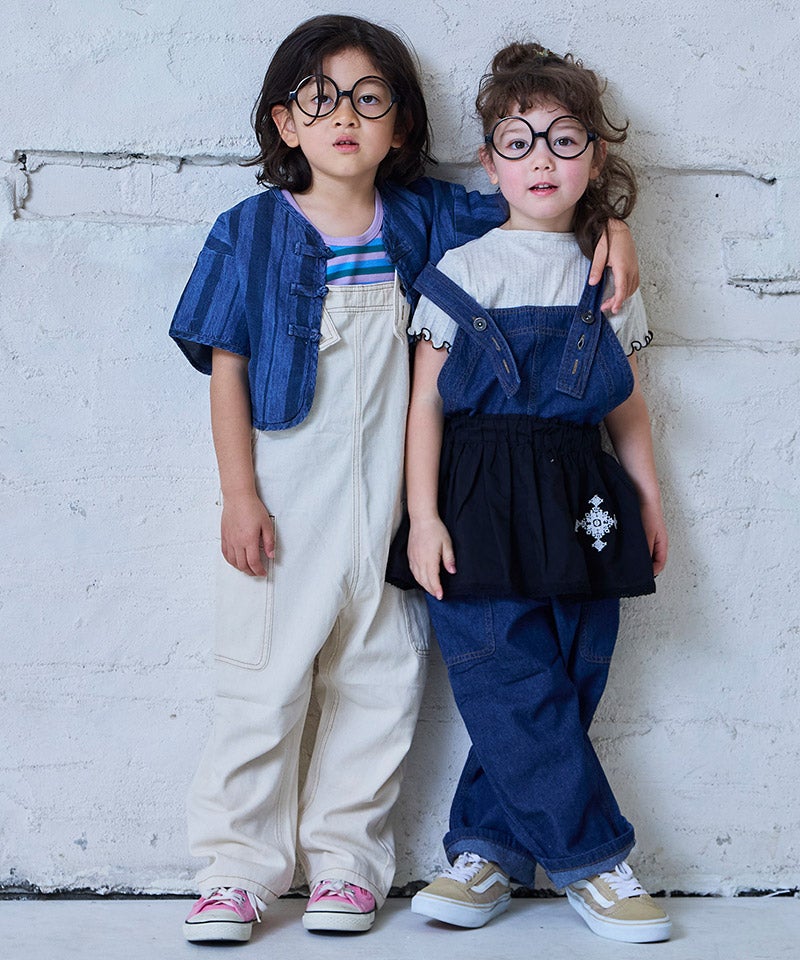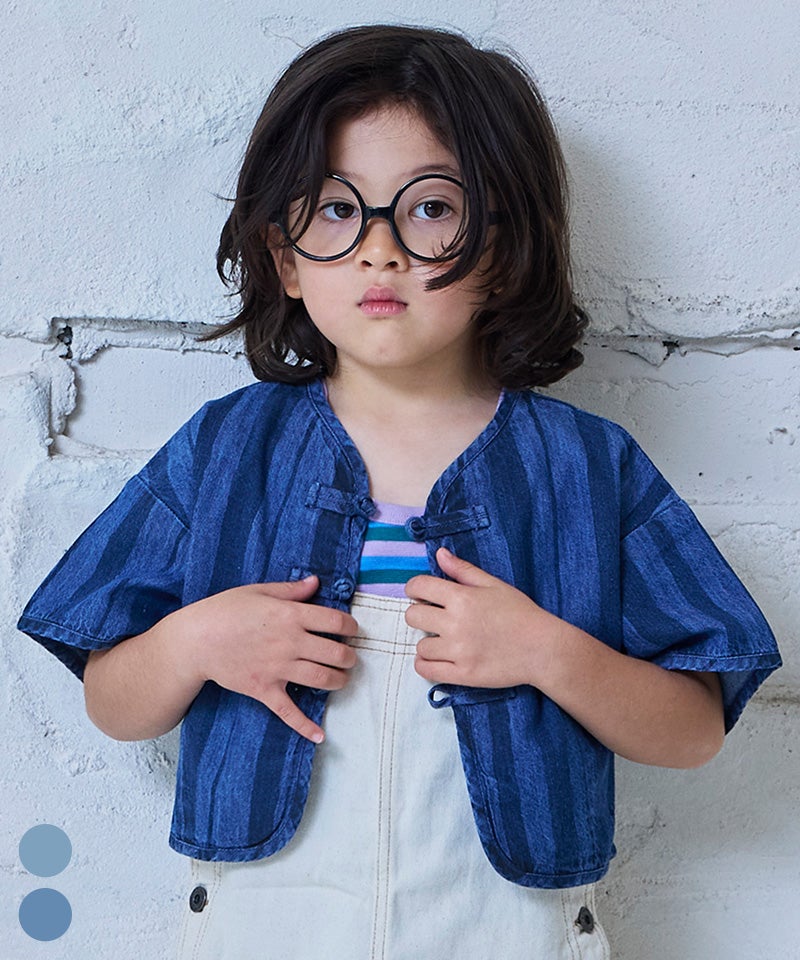 【親子お揃い】デニムハンソデチャイナシャツ