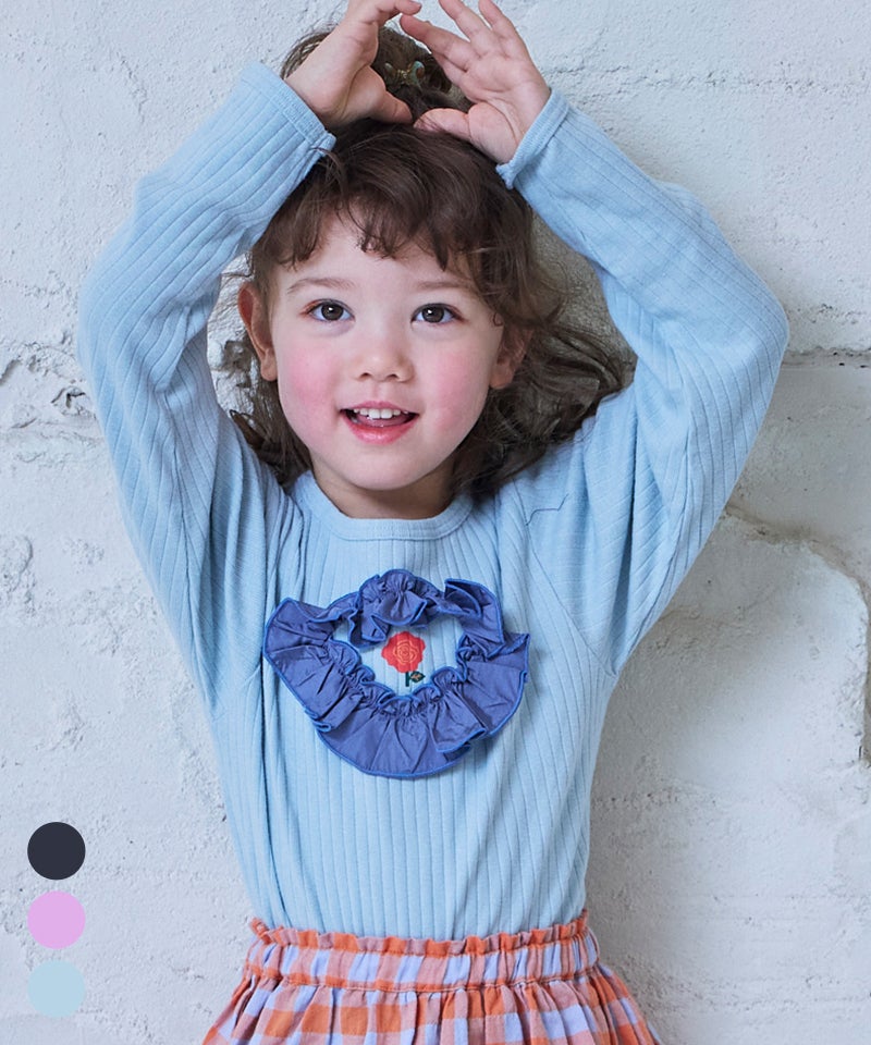 サテンフリルリブカットソー / 大人サイズ