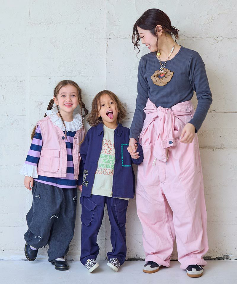 【親子お揃い】デニムサイドフリルバギーパンツ / 大人サイズ
