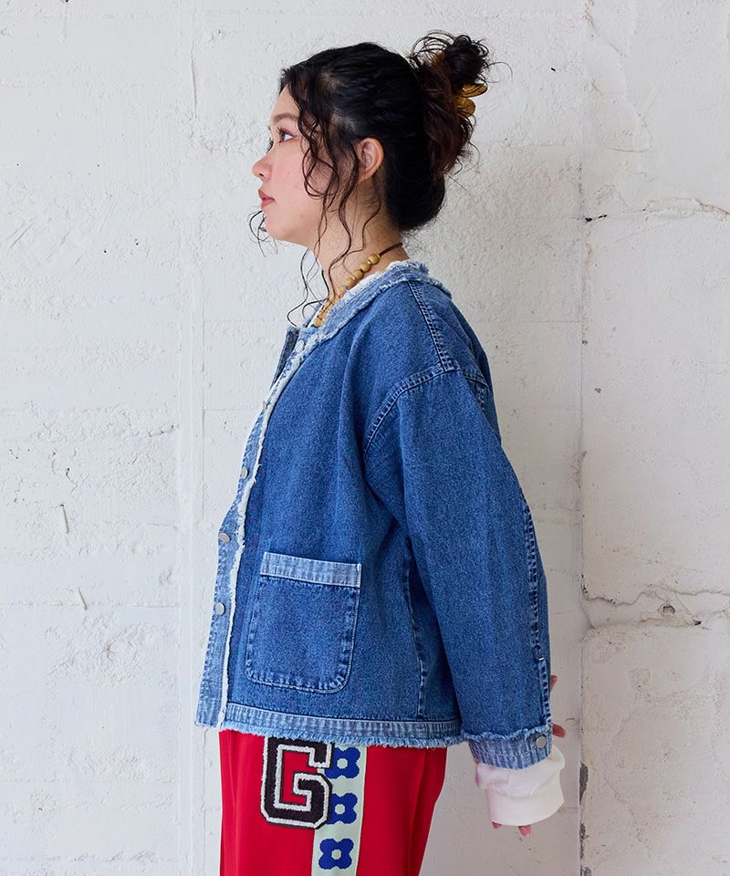 ノーカラーデニムジャケット(大人サイズ)