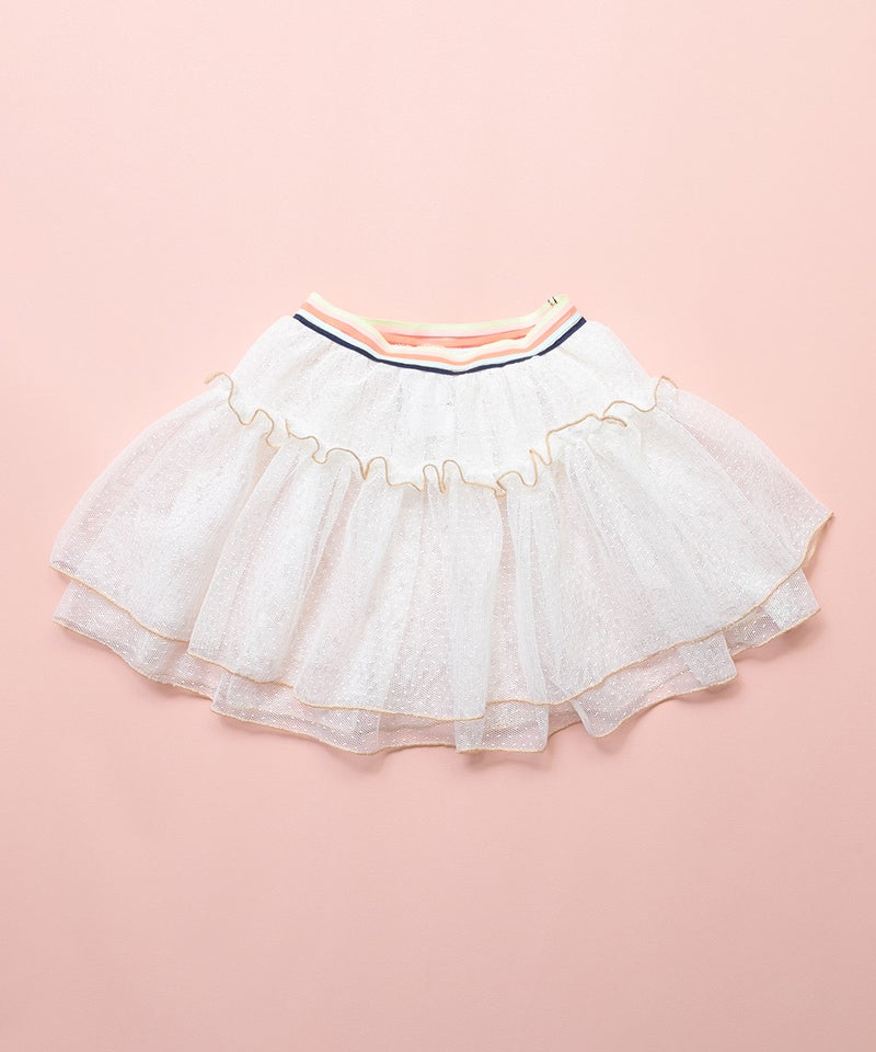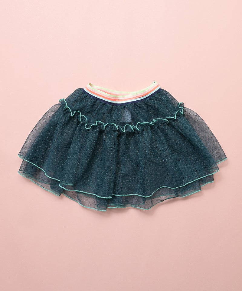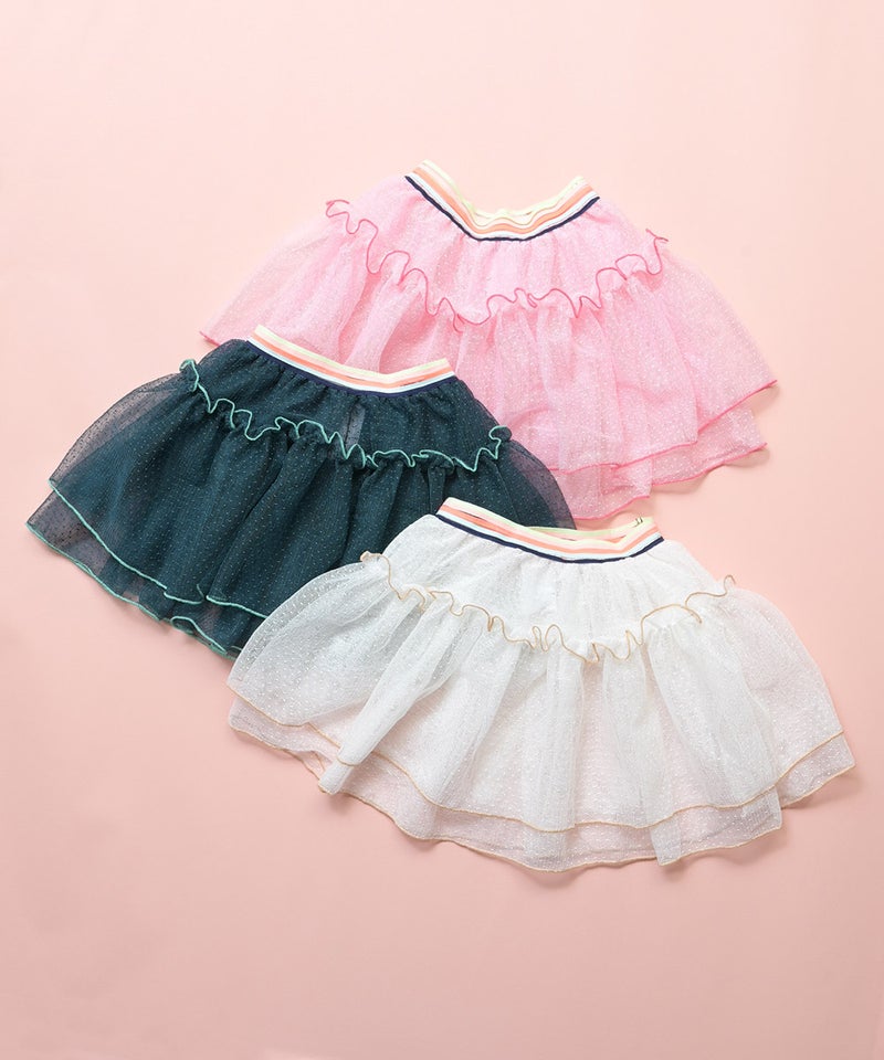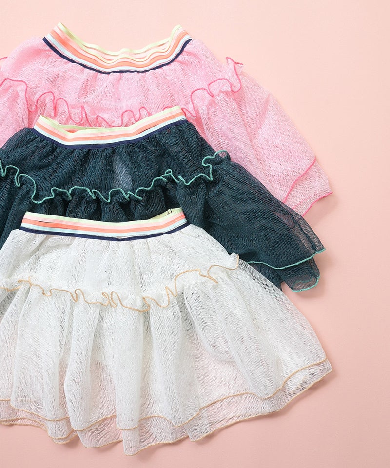 ふんわりと重ねたチュールが目を引く、存在感たっぷりのスカートです。
