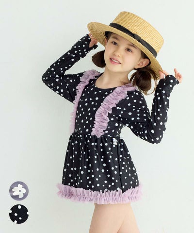 小さいサイズを着せているのですが、可愛すぎてサイズアップも購入させて頂きました。 腕も、手の甲も、紫外線対策出来て、デザインも帽子とセットで着用すると、すごく可愛いです。 背中だけ空きすぎていて、そこだけ日焼け止めを塗り直すが大変なので、もう少し狭い空きにしてほしいです。 あと、一緒に着用出来る足の甲までカバー出来るラッシュガードレギンス(フリルの色と同じとか)があると、更に嬉しいです。どうぞ来年は宜しくお願い致しますm(_ _)m 娘は水辺大好きなのですが、肌が弱く紫外線対策は、しっかりしないといけないので、可愛い長袖水着、嬉しかったです。ありがとうございました。