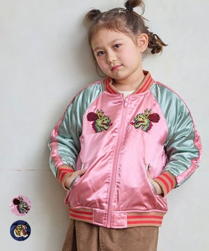 お店を訪ねる機会があったので実物を確認できました。サテン刺繍ジャケットのが後ろの絵が好みでしたが、ペランペランな生地で指が荒れていると引っかかるタイプのものだったのでやめました。こちらは中綿で適度にあたたかそうですし。 欲しかったサイズはお店にはなくワンサイズ下を試着してみてジャストでした。お店を出てから急いで欲しかったサイズを注文しました。 来月旅行へ行くので羽織らせるのが楽しみです。 ➡︎ 旅行に3着羽織りを持ってきましたが、こればかり着せています。絶妙な色使いが良いので、親バカですがとても似合っています。 でも、既に袖のところを1箇所引っ掛けていました。指が荒れていたりすると引っかかりやすい生地感です。