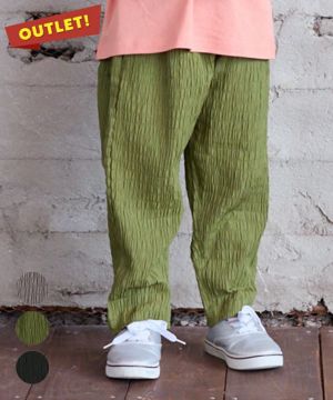 シャーリングのくしゅっとした生地が可愛く、薄手でこれからの季節に良さそうです。 98cmの子に120サイズのセットアップで購入しましたが、ウエストを1回、裾を1回程度折り返したらずり落ちることもなくちょうど良い丈感で普通に履けました。