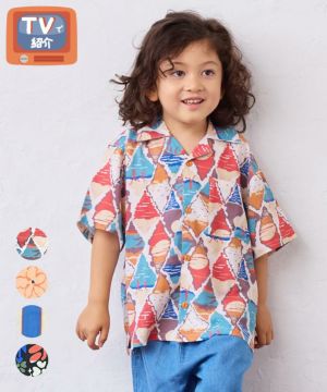 下の子(女の子)用にオレンジを購入。半袖プリントセットアップ黒を、上の子(男の子)に買ったのですが、お揃いになってかわいいです!