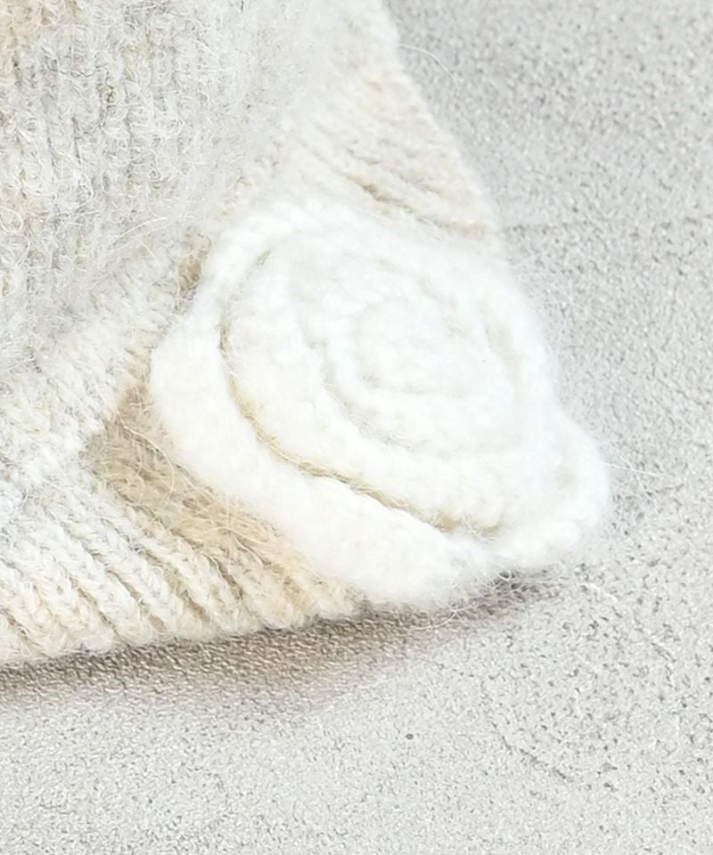 【マシンウォッシャブル】ポンポンフラワーニットバブーシュカ