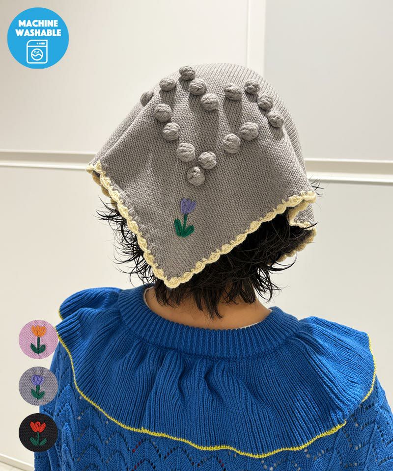 【マシンウォッシャブル】ポンポンフラワーニットバブーシュカ
