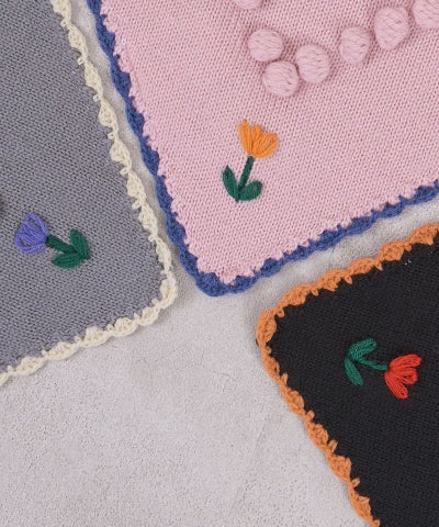 【マシンウォッシャブル】ポンポンフラワーニットバブーシュカ