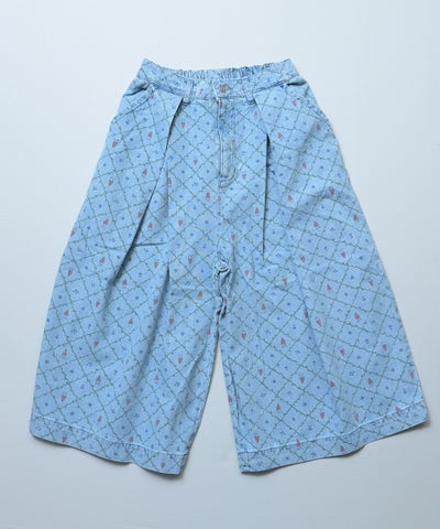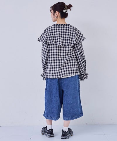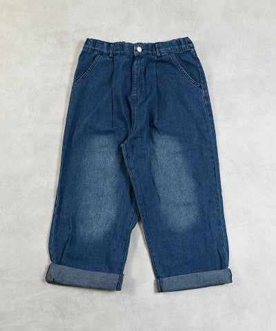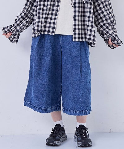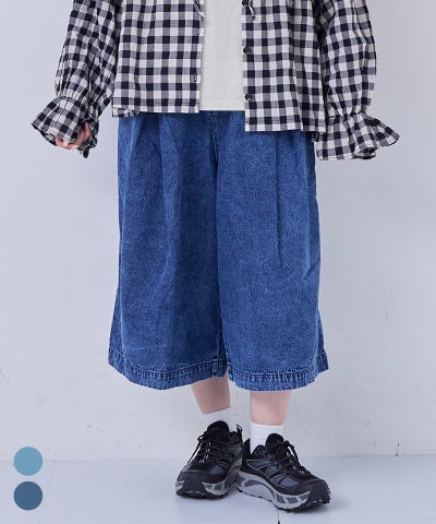 【親子お揃い】デニムオーバーサイズタックキュロットパンツ/大人サイズ