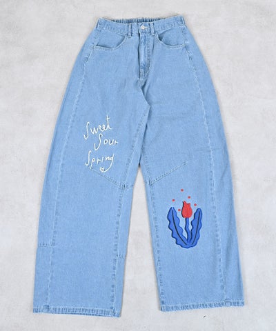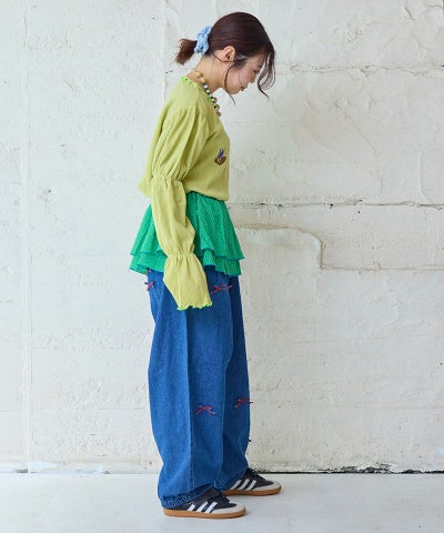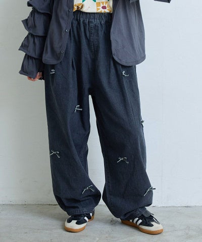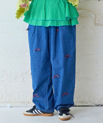 リボンいっぱいデニムバレルパンツ / 大人サイズ