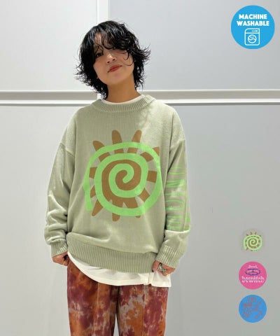 【マシンウォッシャブル】クルーネックプリントセーター/大人サイズ