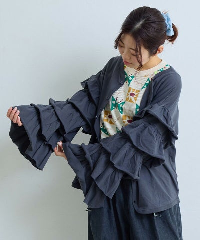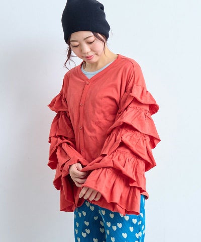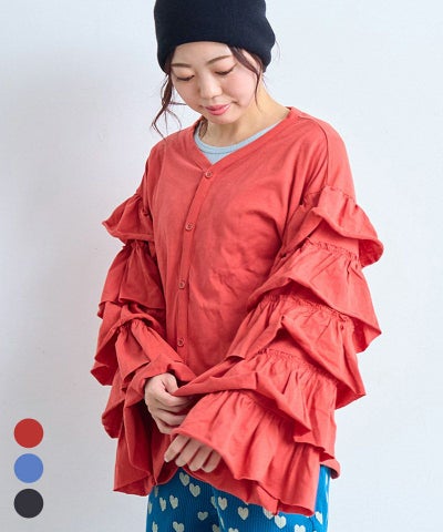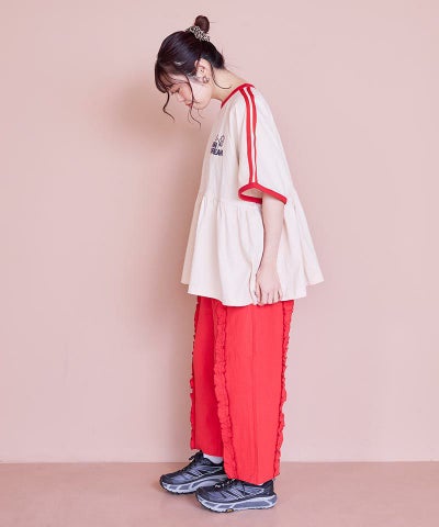 サテンフリルリブカットソー / 大人サイズ