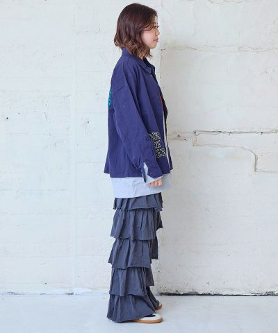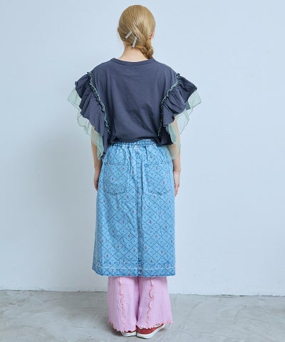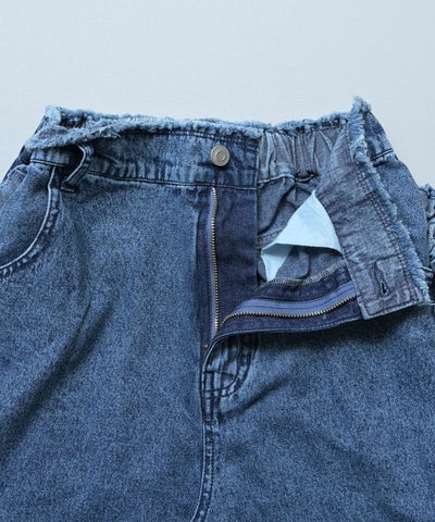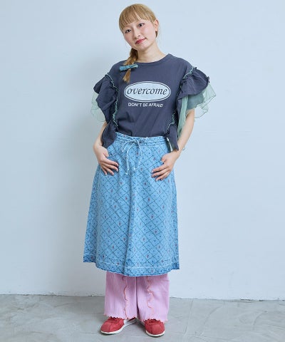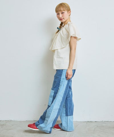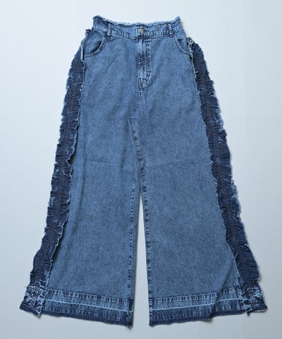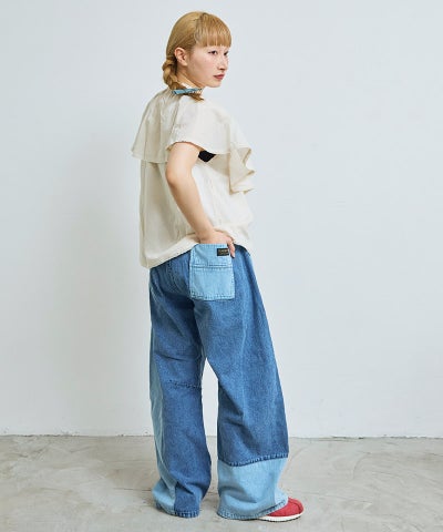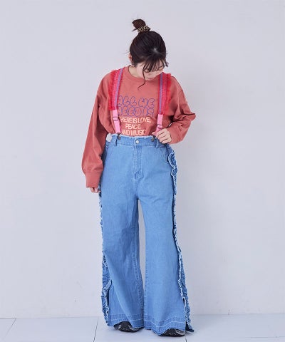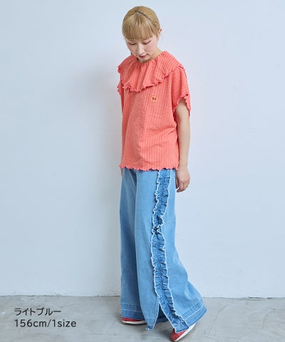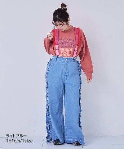 【親子お揃い】デニムサイドフリルバギーパンツ/大人サイズ