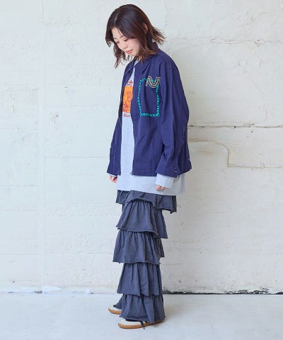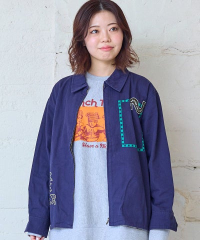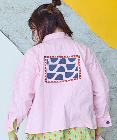 ヘリンボンツイルシシュウプリントジャケット / 大人サイズ
